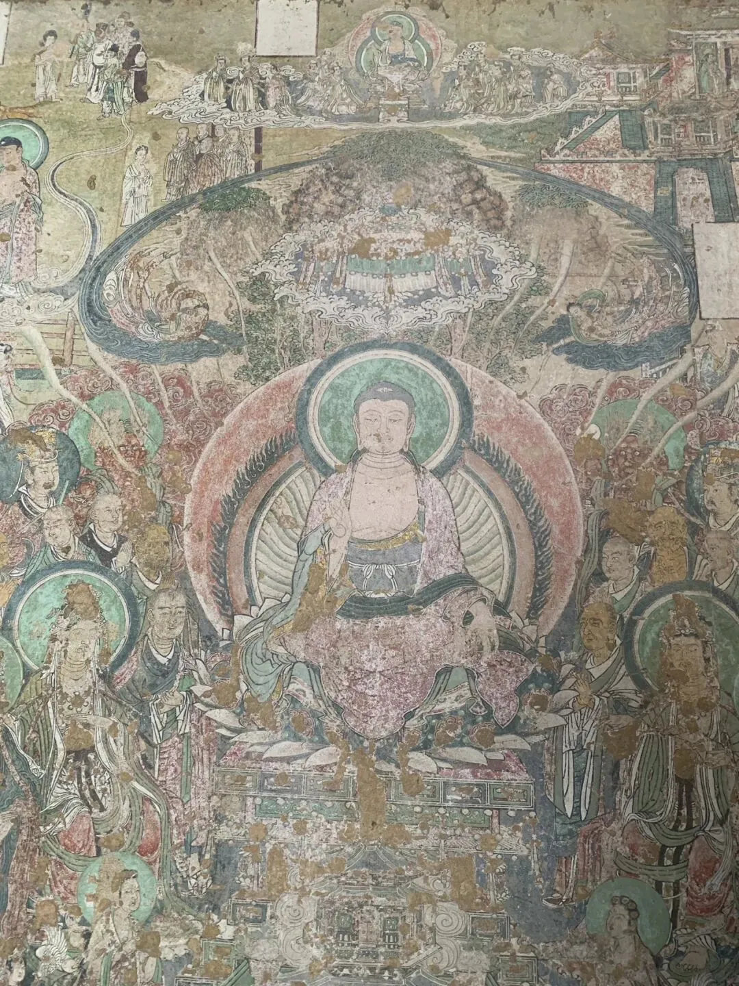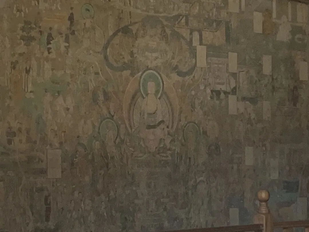 为保护壁画,大殿已经不开放,但隔着栅栏仍然可以拍到壁画的全貌。