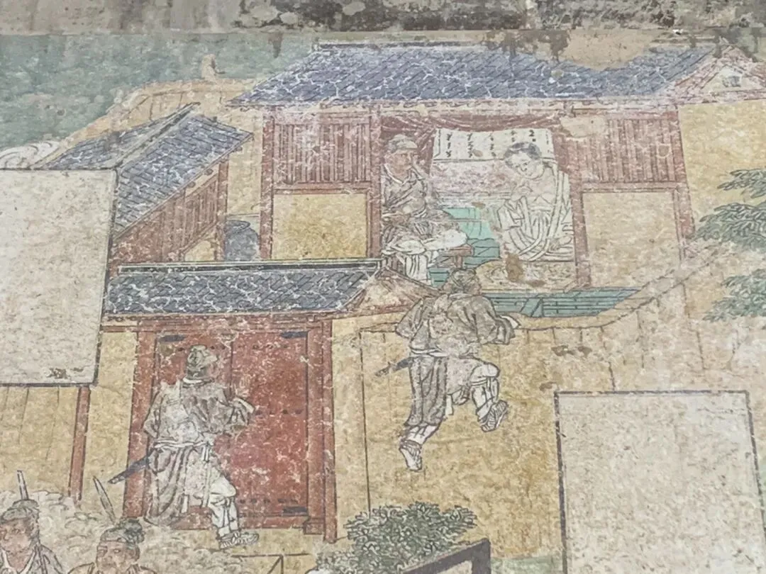 与岩山寺的壁画出自于御前画匠不同,开化寺的壁画是民间艺人的作品,前者是在国破家亡之后,后者是在国力繁荣鼎盛时期,不难看出两者在艺术创作构思方面的差异。在王逵的笔下可以处处体会到对家国的思念和神往,恰如《东京梦华录》中对故国昔日繁华的撕心追忆。酒店里正好有这本书,重新读起来感觉与以往大不同。