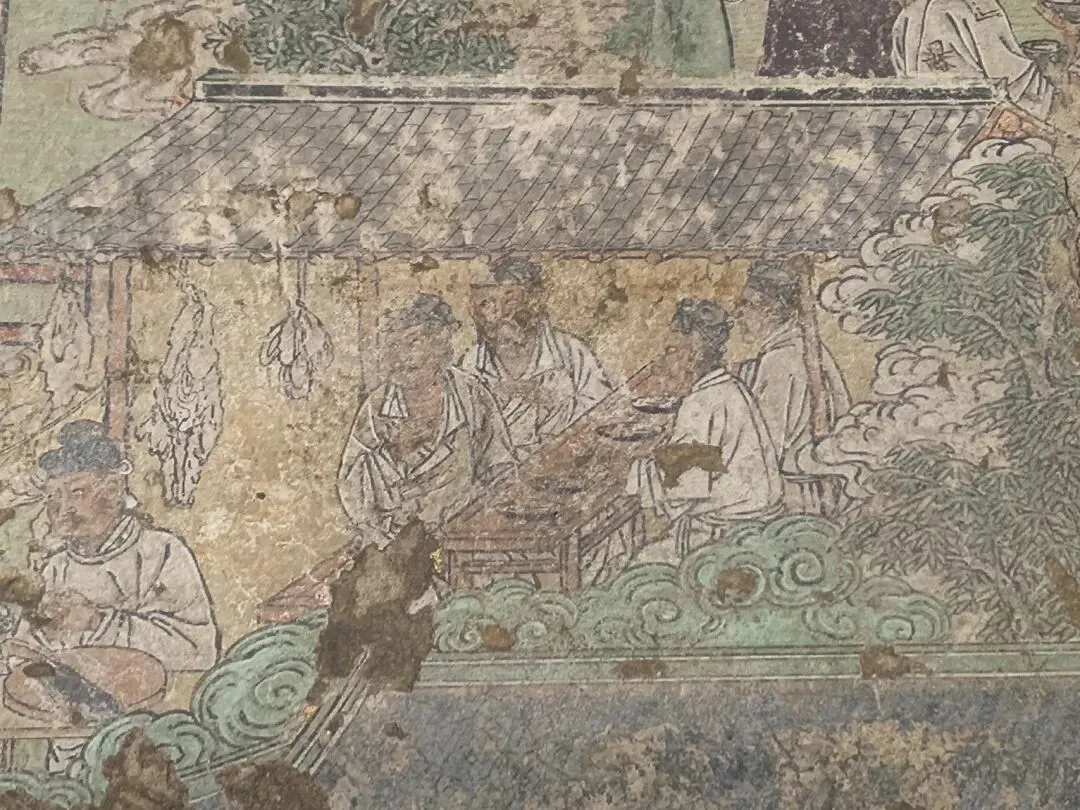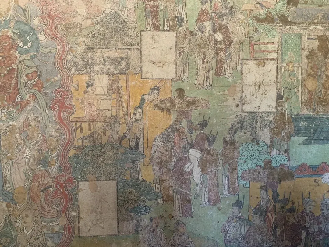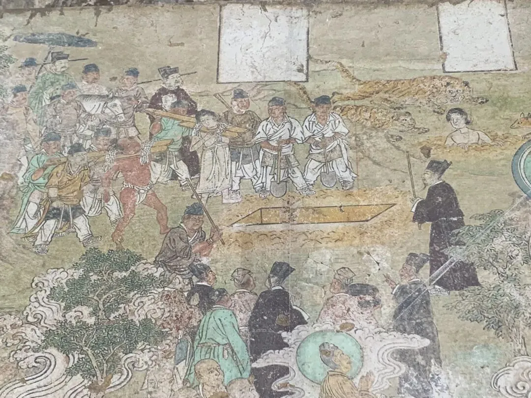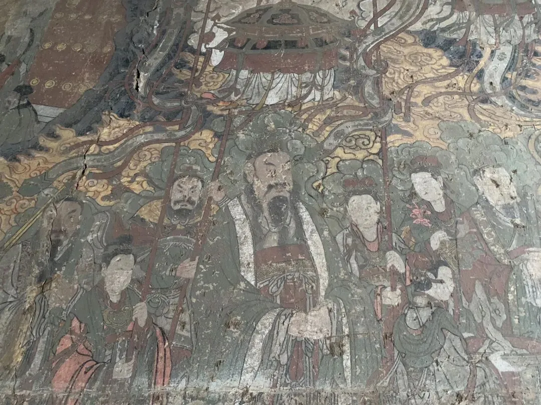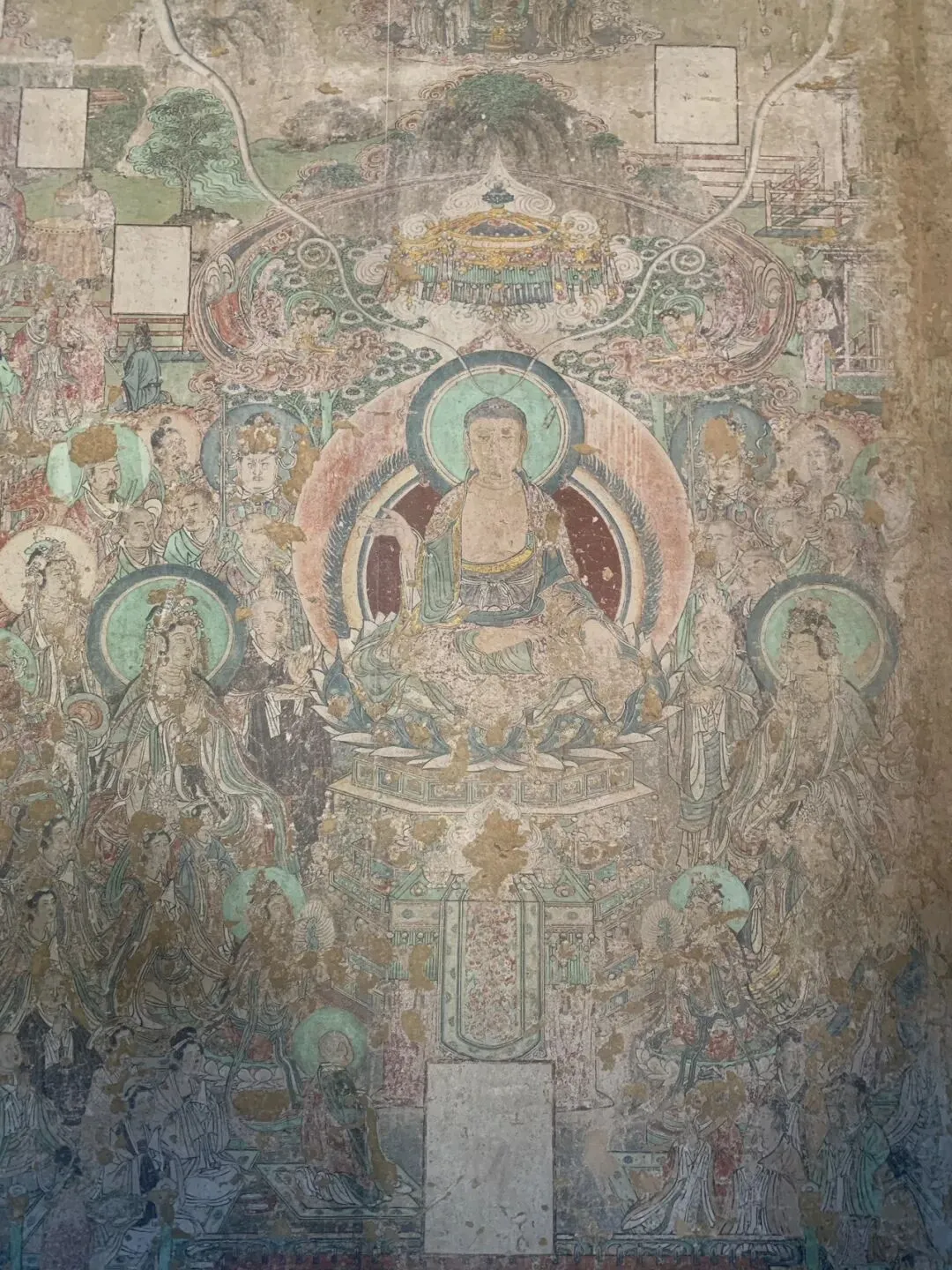 在东西两边的偏殿,当地的文保部门和中国美术学院合作高清复原了壁画的全貌,色彩、题记、人物逼真,看起来就非常过瘾。