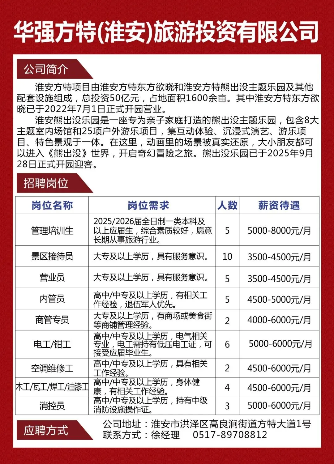 【淮安招聘】华强方特(淮安)旅游投资有限公司新春招聘公告