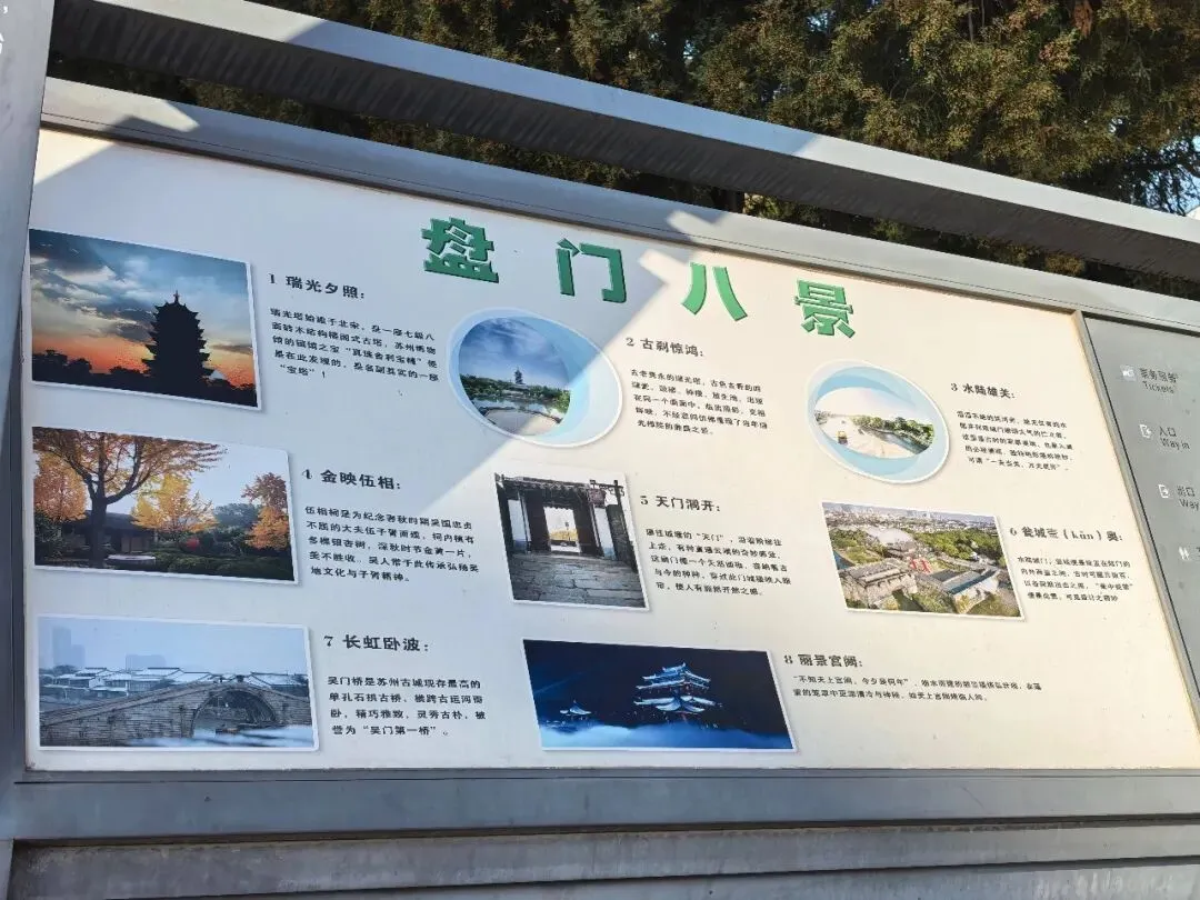 盘门景区位于苏州古城西南隅,名胜古迹众多,人文景观丰富。景区内瑞光塔、水陆城门、吴门桥分别为国、省级文物保护单位。盘门始建于春秋吴王阖闾元年(公元前514年)由伍子督造;瑞光塔是苏州最早的佛塔,始建于三国赤乌十年(公元247年);吴门桥始建于北宋元丰七年(公元1084年)是苏州最高的单拱石桥,飞跨在古运河上。为弘扬历史文化,加快发展旅游事业,近年来,盘门景区修复古城墙,整瑞光塔院,重建四瑞堂、伍相祠、放生池,还营造一池三山、种树植草,精工修造丽景楼、涛隐翠垫、双亭廊桥、水洞等诸景点,成为苏州古城内风貌独特的历史文化旅游胜地。