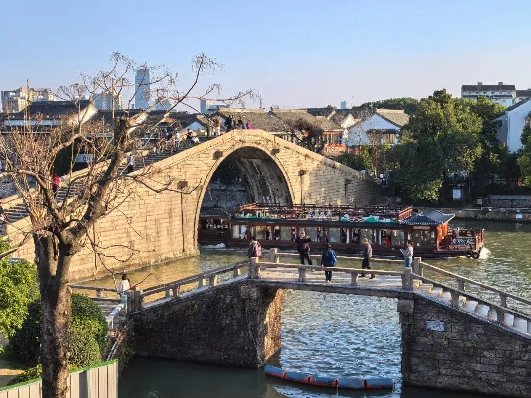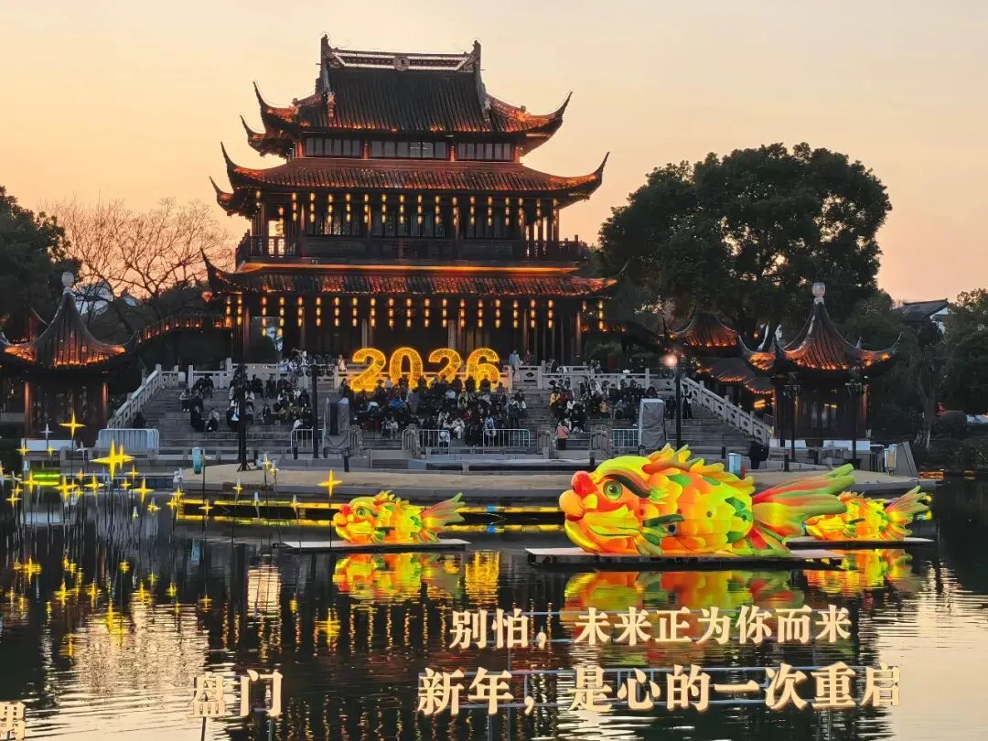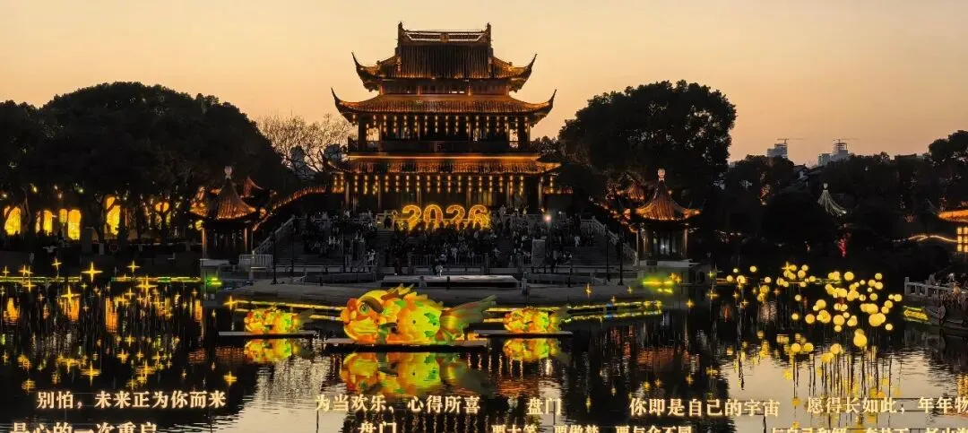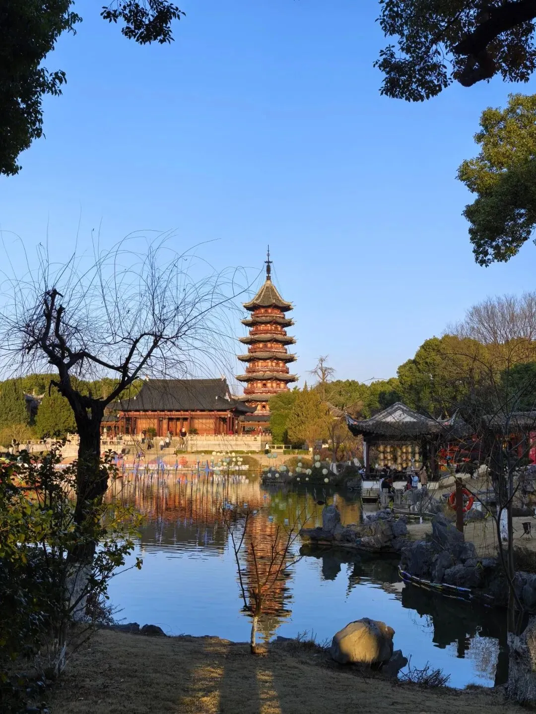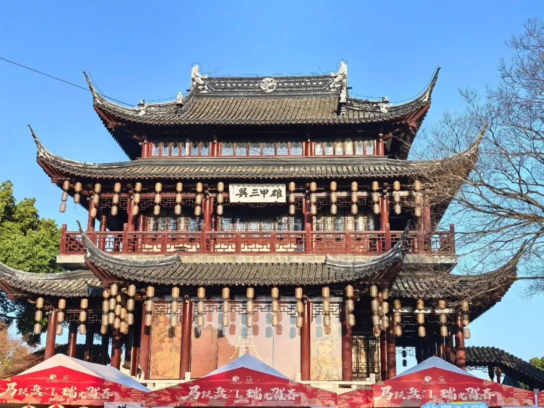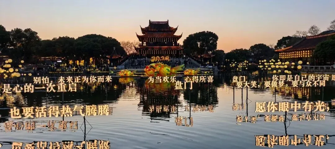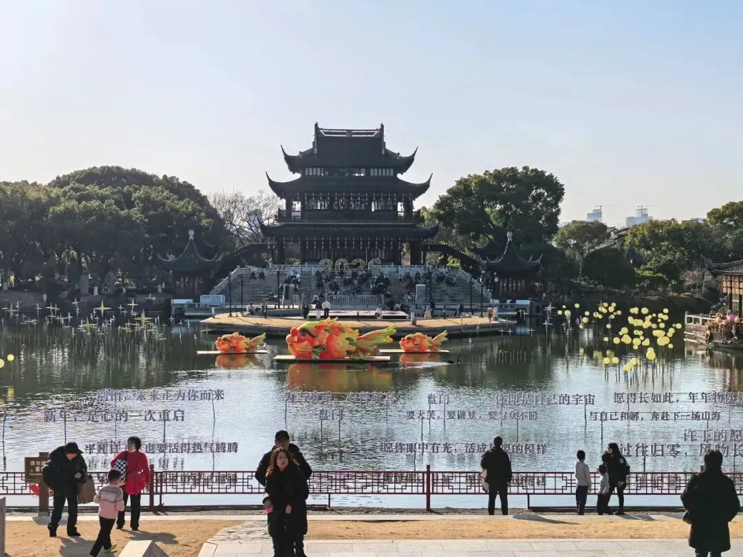 【游园】—— 苏州盘门景区过年期间被虎丘灯会种草,但是被某书上虎丘的people mountain people sea劝退。 于是退而求其次,选择去盘门景区,由于夜场票已经买不到,就买了日场票,博物馆出来稍作休息便赶在4点前入场了。