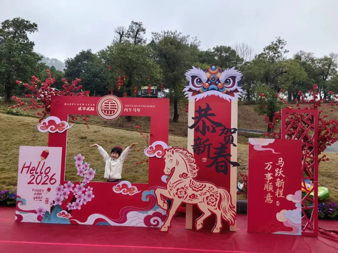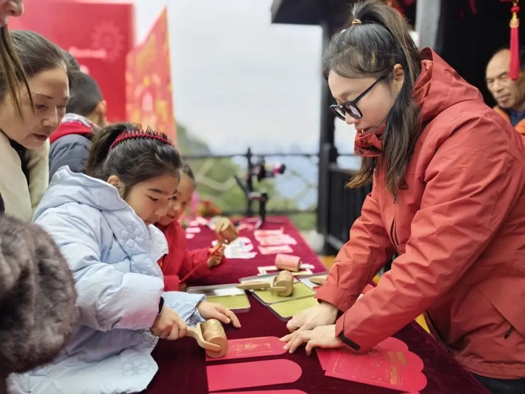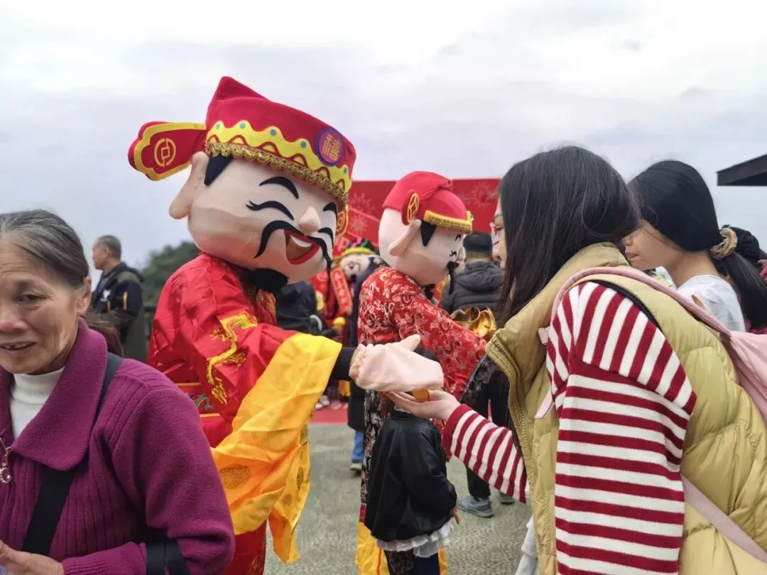 景区开展丰富多彩的“迎新春”系列主题活动,大年初一,非遗拓印体验与新春“抓马”夹礼挑战吸引众多游客亲手制作福字、赢取好礼。正月初五“迎财神”更是活动高潮——五路“财神”巡游送福,将金币巧克力派发至游客手中,欢声笑语回荡峰林,为马年新春讨得“马到成功”的好彩头。