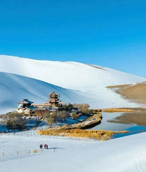 鸣沙山月牙泉这个地方,大家都知道它是敦煌的名片,但大多数人去的是夏天,看的是沙漠和绿洲的对比,这个对比确实震撼,可你冬天去一次就会明白,真正能让人沉默的不是对比,是统一,当整个沙漠都被薄雪覆盖,月牙泉结了冰,那种感觉不是美,是一种"原来沙漠也会安静下来"的顿悟,夏天的鸣沙山是热烈的,冬天的鸣沙山是克制的,这种克制让你突然意识到,大自然其实不需要一直表演。