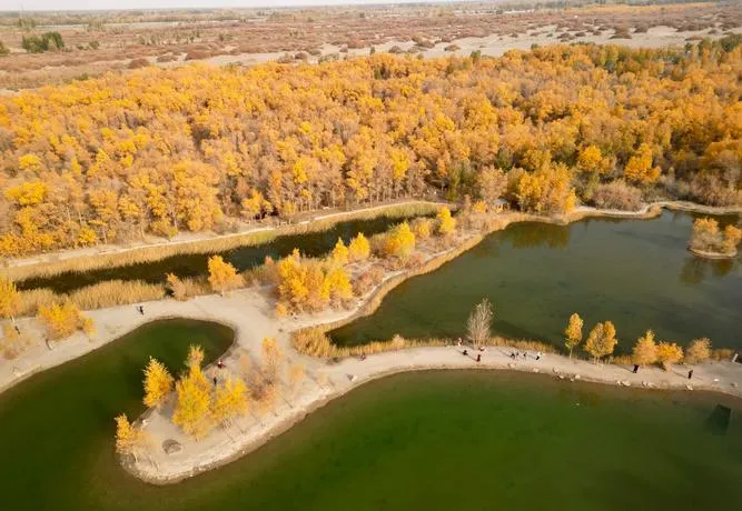 金塔胡杨林在秋天是金黄色的,那个时候去的人多到爆,但很少有人知道,冬天的胡杨林也值得看,因为叶子落光之后,你才能看清楚胡杨树的骨架有多野,那些扭曲的树干,那些向上伸展的枝条,都在告诉你这种树是怎么在戈壁滩上活下来的。