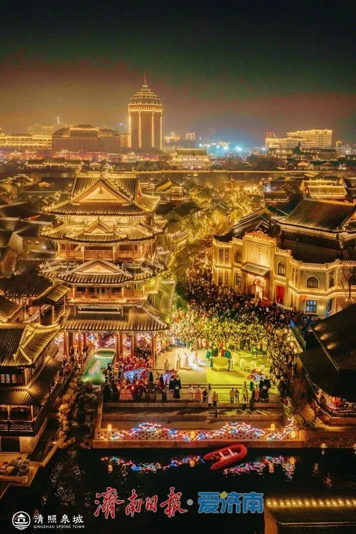 明水古城打造“梦幻戏剧嘉年华”,融合传统非遗与跨国戏剧,每天300场演艺轮番上演,“提灯赏泉”“竹筏鱼灯秀”等主题活动勾勒宋韵沉浸体验;济南方特百名NPC陪玩、千架无人机秀、新春灯会大放异彩;融创乐园推出天官赐福百戏过大年、巨型孔明灯打卡等特色项目,融创海世界创新推出的全国首个宋词沉浸式水下剧场《蝶恋花》将古典文学与水下表演完美结合;明府城举办“礼韵戏集”系列活动,市井欢歌、快哉清照、卖花货郎、渔灯祈福等微演艺互动巡游轮番登场;鹊华中新园“狮城游园会”,打造济南首个“娘惹味”新年,实现传统年俗与南洋风情的创新融合,为游客带来别样年味;九曲黄河万里情主题街区将浓郁的年味氛围与沉浸式体验深度融合,成为众多游客争相打卡的热门目的地。