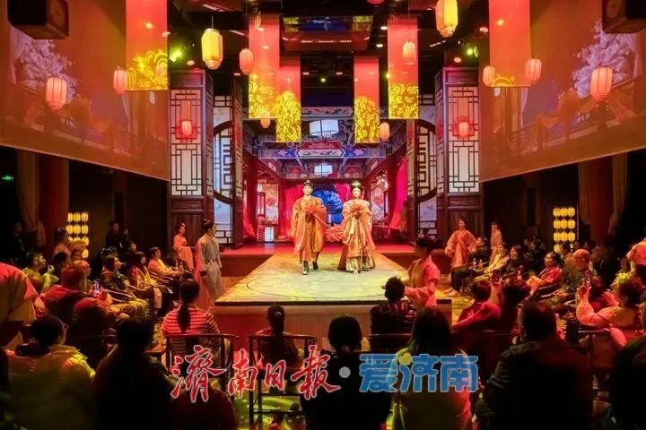 大明湖畔的明湖居全新打造的沉浸式互动演艺《金风玉露宜相逢》人气爆棚,济南融创乐园《梦回西楼》《西游大联欢》等旅游演艺项目现场火爆。省会大剧院、方荣翔大剧院、宝贝剧场等轮番上演京剧、吕剧、音乐剧、儿童剧等各类演出,开心麻花剧场推出爆笑舞台剧《婿事待发》,南丰戏楼沉浸式互动剧《先生》座无虚席。