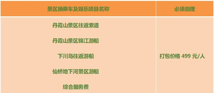 499元/人自费套餐(详情见下图)