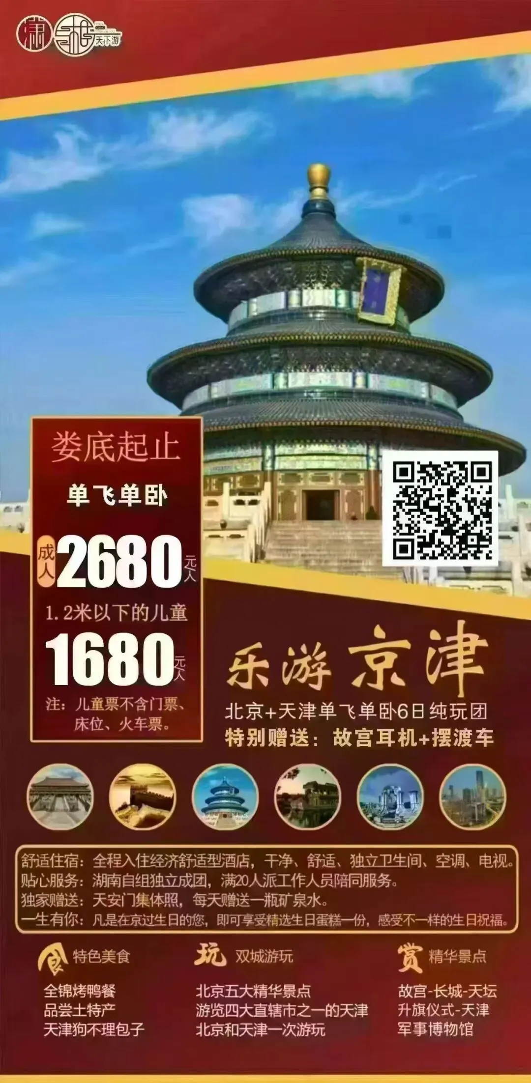 💰 发班价格: 成人:2680元/人,1米2以下儿童1680元/人