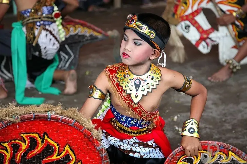 音乐是竹马舞的灵魂,爪哇灵魂之音——甘美兰(Gamelan)乐团敲响铜锣、竹琴(Angklung)和一种叫做肯当(Kendhang)的鼓。鼓手是整个乐队的指挥,那急促而重复的鼓点,像极了战场的脉搏,也像是一种催眠的咒语 。它不仅仅在伴奏,更是在控制整个仪式的进程,引导舞者的情绪,甚至催化接下来即将发生的“神迹”。