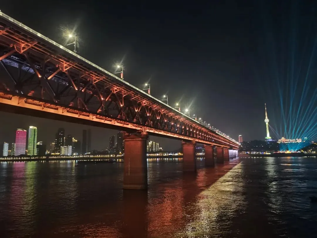 建议:节假日一定要提前预约,预留2-3小时参观,深入了解荆楚文化。3、武汉长江大桥 中国首座公铁两用长江大桥,素有“万里长江第一桥”美誉。位于武昌蛇山和汉阳龟山之间,全长1670米,主桥长1156米,桥身共有8墩9孔,每孔跨度为128米,桥下可通万吨巨轮。上层为双向四车道公路,下层为双线铁路,是连接京汉铁路和粤汉铁路的重要通道,贯通了祖国南北经济大动脉。最佳观赏点:汉口江滩、武昌江滩,夜晚灯光秀时景色更美。可步行或骑行过桥,欣赏两岸风光。