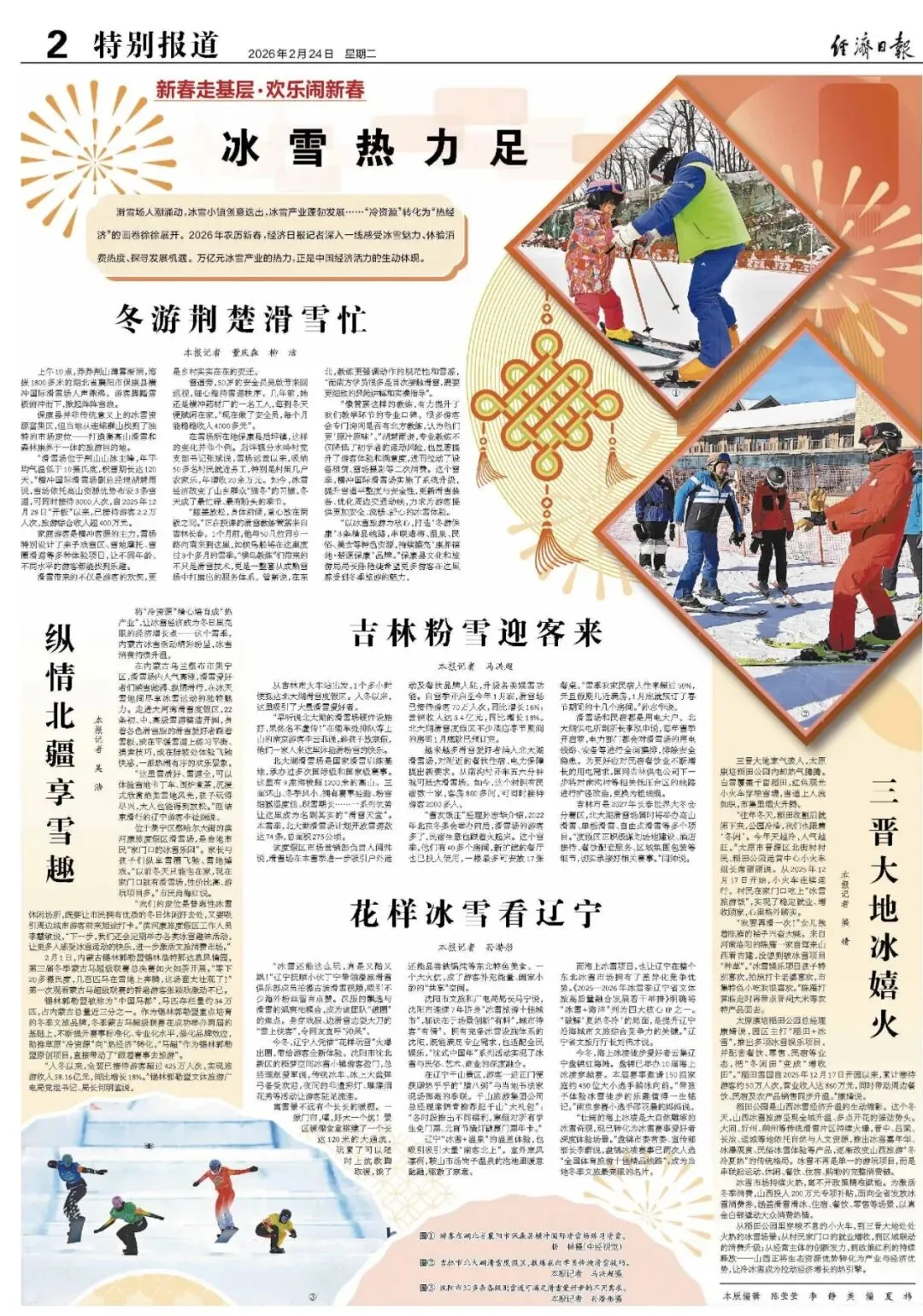 冰雪旅游成为春节文旅市场的重要增长点。横冲国际滑雪场、梅花寨云海滑雪场凭借优质雪景资源、专业滑雪设施及沉浸式体验,吸引大量游客结伴前往。滑雪健身、乐享冰雪成为春节出游新潮流、新时尚,横冲滑雪场日均接待游客1600人。亲子互动、好友竞技、情侣同游的热闹场景随处可见,欢声笑语回荡在皑皑白雪间,有效带动了周边餐饮、住宿等相关产业发展。