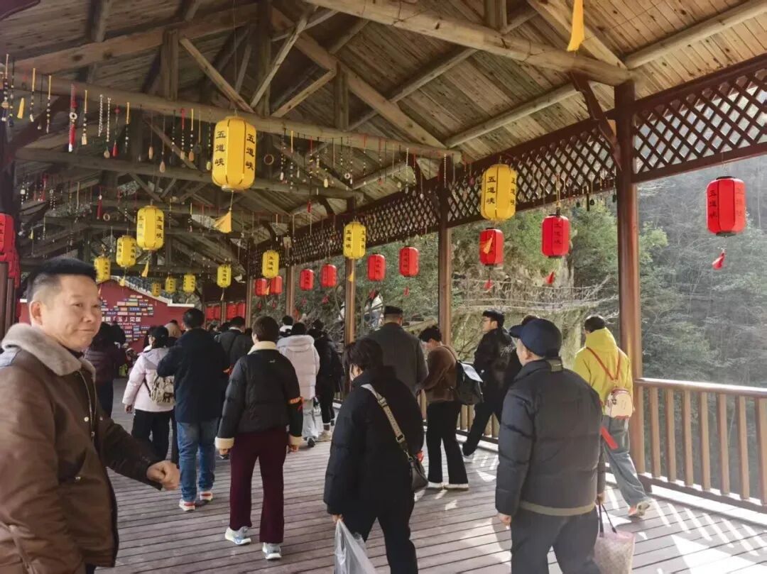五道峡、九路寨景区推出门票减免优惠活动,吸引远近游客打卡。焕新升级后的五道峡景区,凭借完善的基础设施、优质的游览体验,成为春节全家出游的首选之地。景区内青山叠翠、溪流潺潺,红灯笼与祈福带相映成趣,奇山异石与瀑布溪流构成绝美画卷,阖家出游的温馨场景随处可见。格栏坪村、白竹村、黄龙观村、寨湾村等美丽乡村吸引返乡游客前往。游客们漫步亲水步道、驻足打卡留念、虔诚祈福许愿,在山水之间感受新春团圆的美好,进一步丰富了我县春节文旅产品供给,为全县文旅市场“开门红”增添了强劲动力。