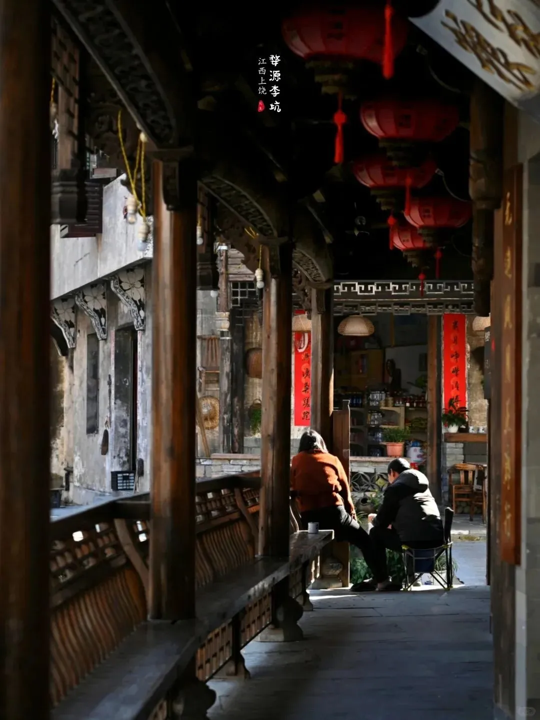 抵达婺源,先逛李坑古村,小桥流水绕着青瓦白墙,古村檐下挂起串串红灯笼,新春的烟火气藏在每一处转角,静谧又治愈。