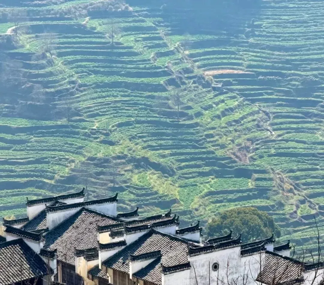 清晨早起登篁岭观景台,看新春日出漫过层层梯田,二月里油菜田一片绿油油,与古村檐下的红灯笼相映,年味和春意一下子就满了。上午走石门村森林步道,在青山薄雾间慢慢走走、静心舒展,让满是负氧离子的清新空气,洗去一整年的疲惫。