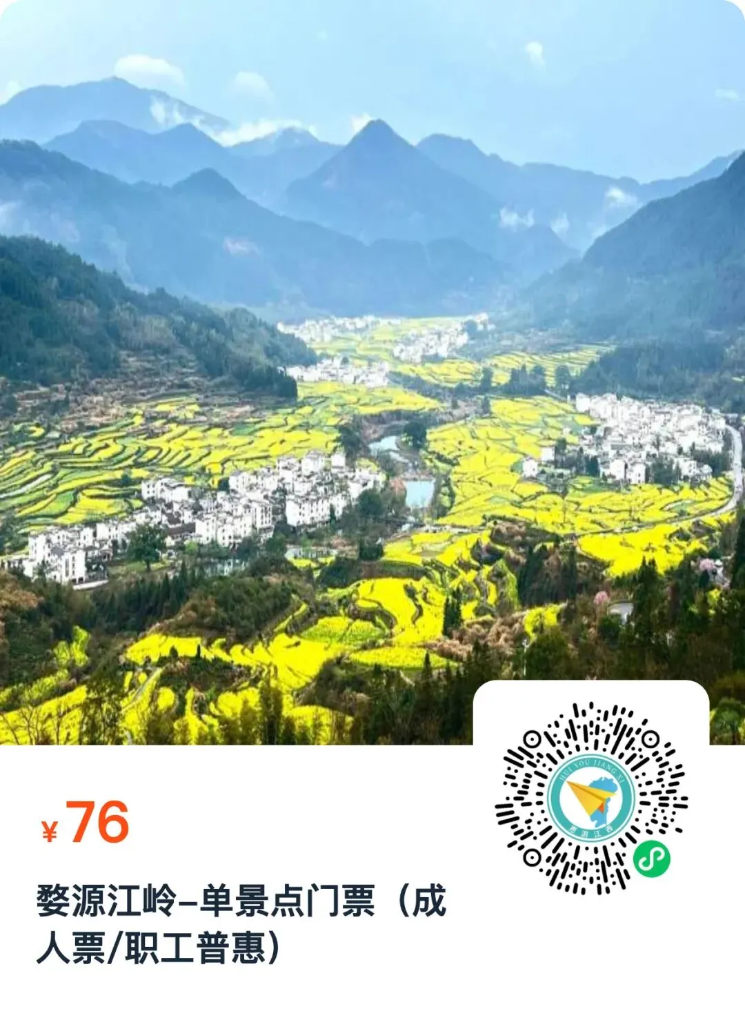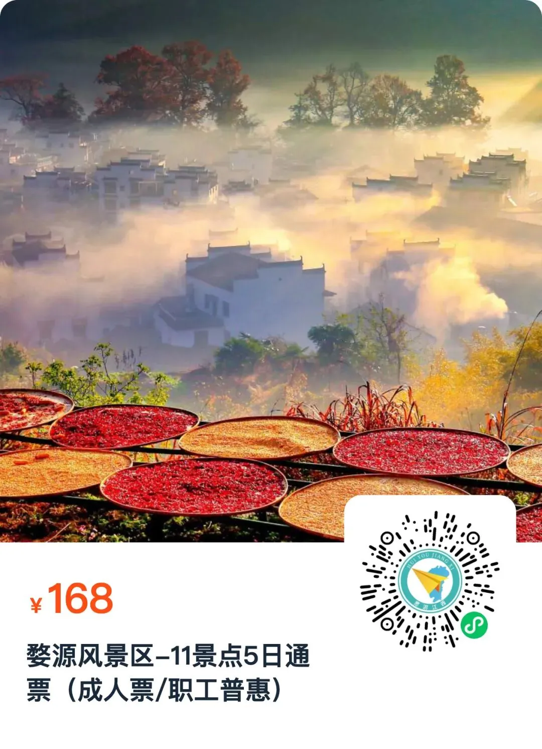 婺源风景区-11景点5日通票:门市价210元/人,普惠价168元/人(包含江湾、李坑、汪口、思溪延村、灵岩洞、严田、文公山、江岭、晓起、彩虹桥、石城公11景点)