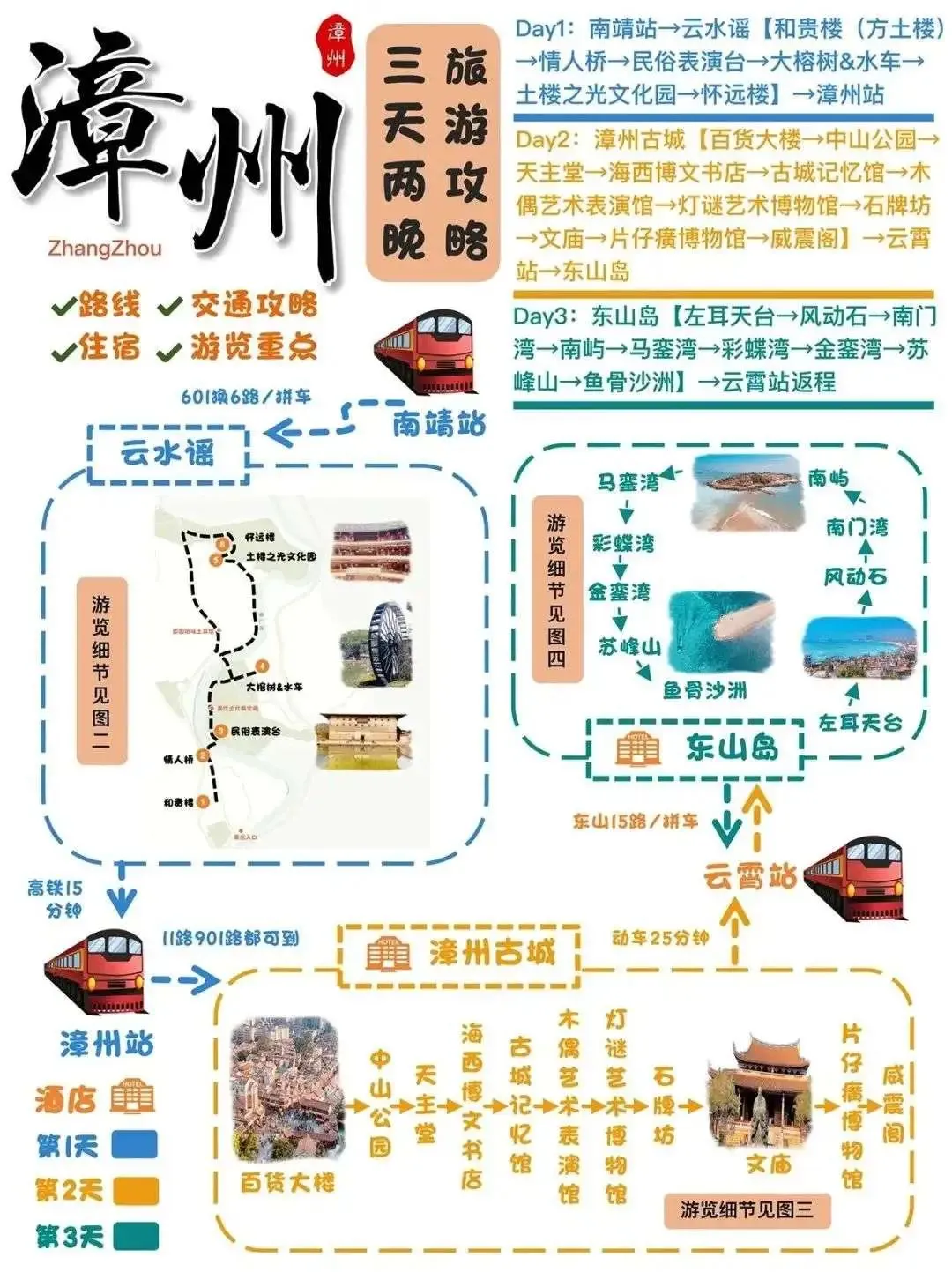 D1:漳州古城(.文庙、香港路). → 南山.寺 → .夜游九龙江