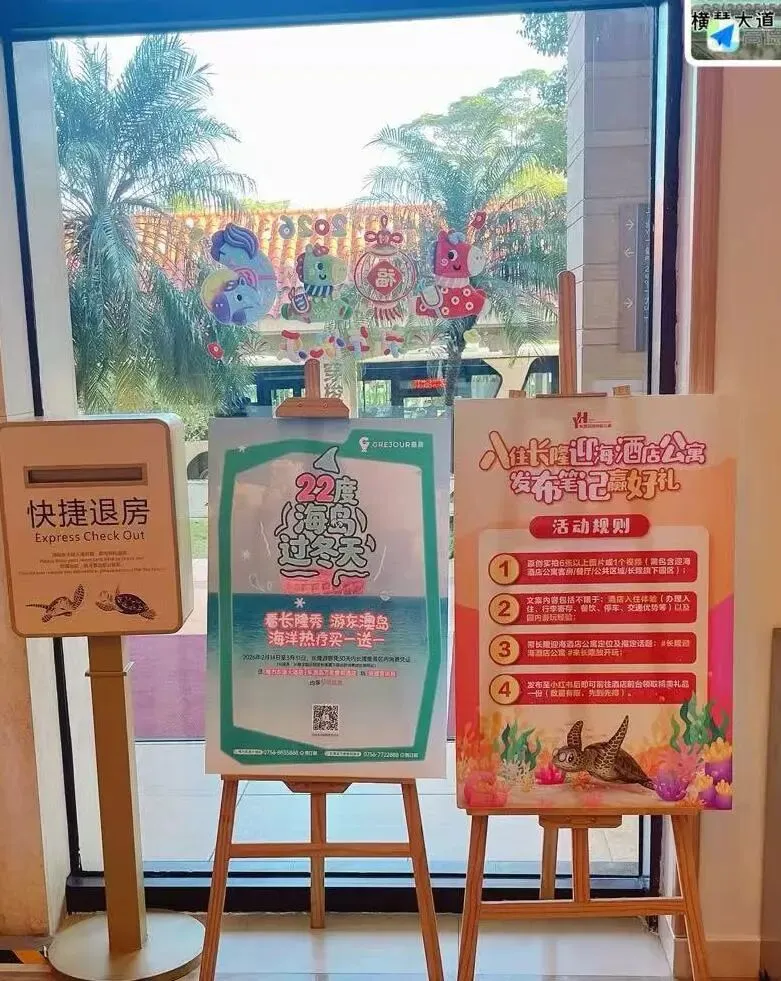 ▲长隆各酒店大堂设置的“长隆+海岛”联动产品展宣传展板