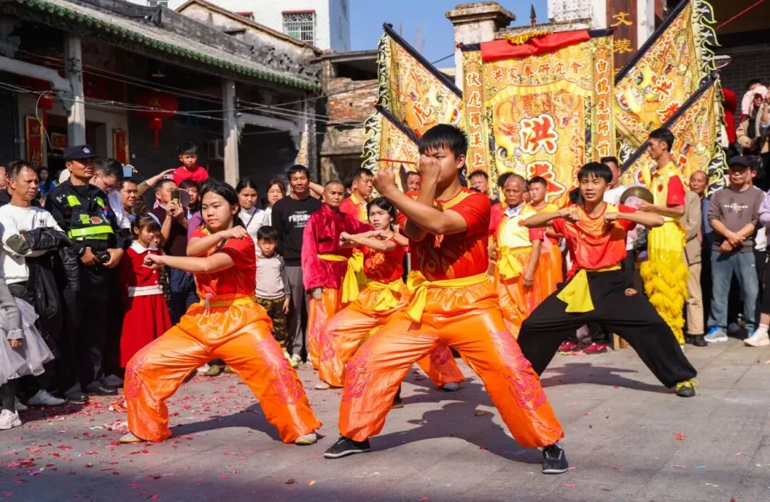 斗门各镇村挖掘非遗资源,活化传统年俗。莲洲镇“花开水乡·鱼戏莲洲”活动以花灯嘉年华与非遗巡游为核心,打造“日赏花海、夜游灯河”全时体验,设自行车赛串联打卡与美食补给;斗门镇接霞庄推出“春风响马蹄 哒哒秀非遗”活动,以NPC情景互动与集章探索形式,活态展示醒狮、粤曲、装泥鱼等非遗;斗门旧街举办“龙腾狮舞·古街迎新”龙狮表演及舞狮体验班,让游客从观看者变为参与者。