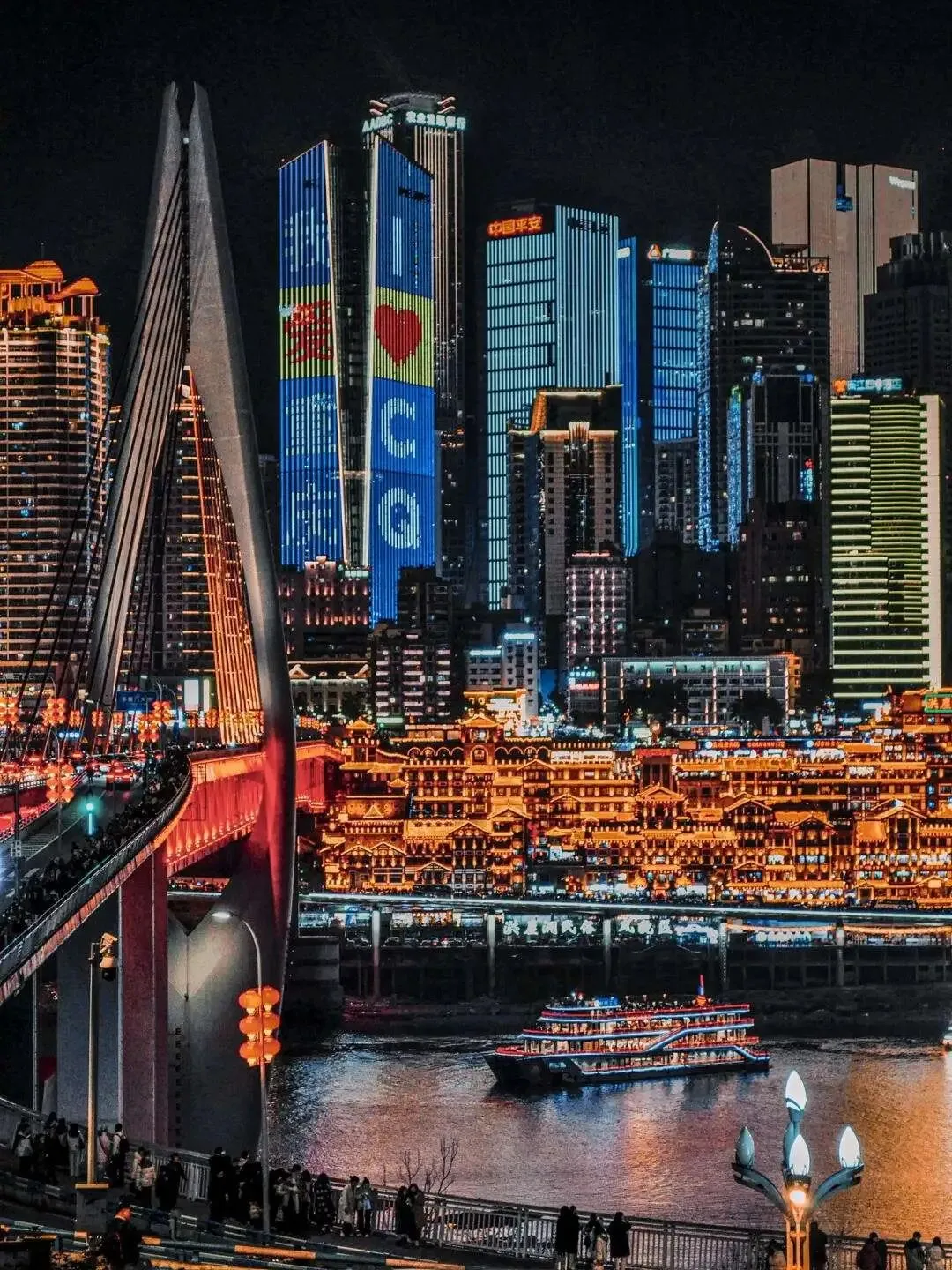 穿过居民.楼的轻轨.,.依.着悬.崖建的洪.崖.洞,这地方的路永远.能给你惊喜。.晚.上去南滨路看.对.岸的楼,像一.堆发光的积木。走累了,随便找家.巷子里.的老火.锅,.毛肚.鸭肠下锅,啥烦恼都涮没了。