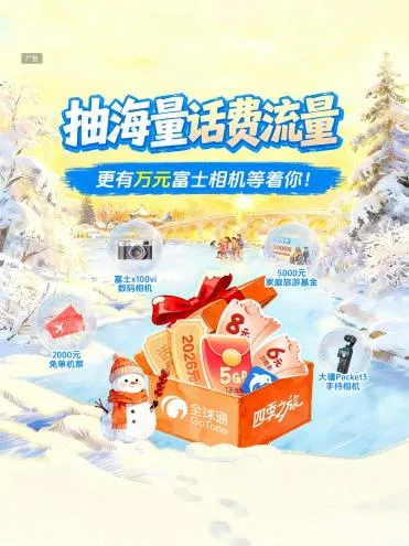 开工大吉!来全球通四季之旅抽5000元旅游金、2026元话费