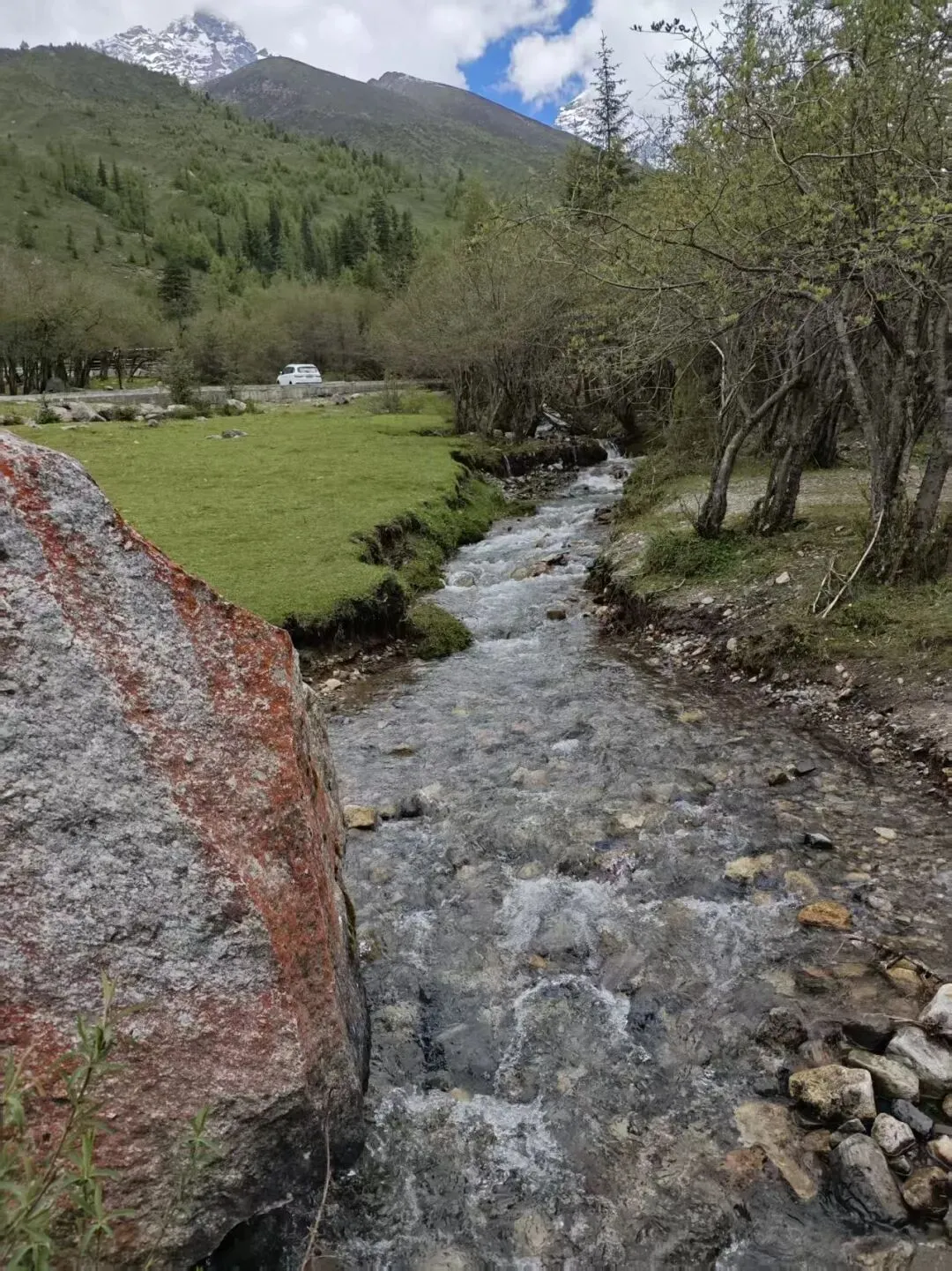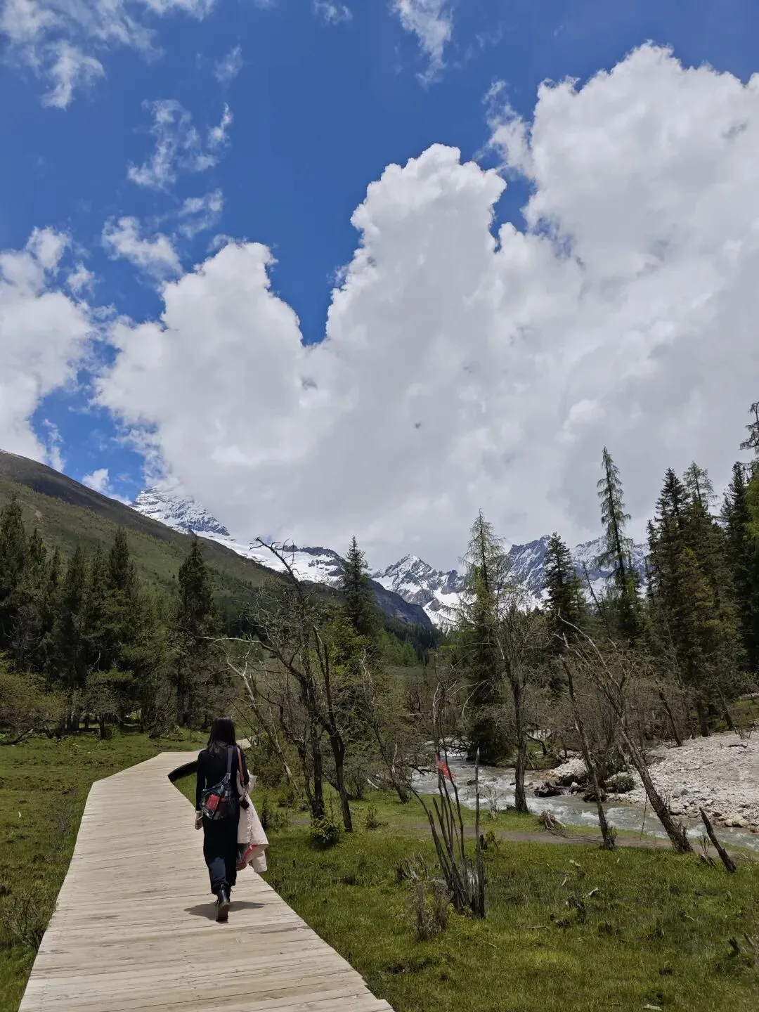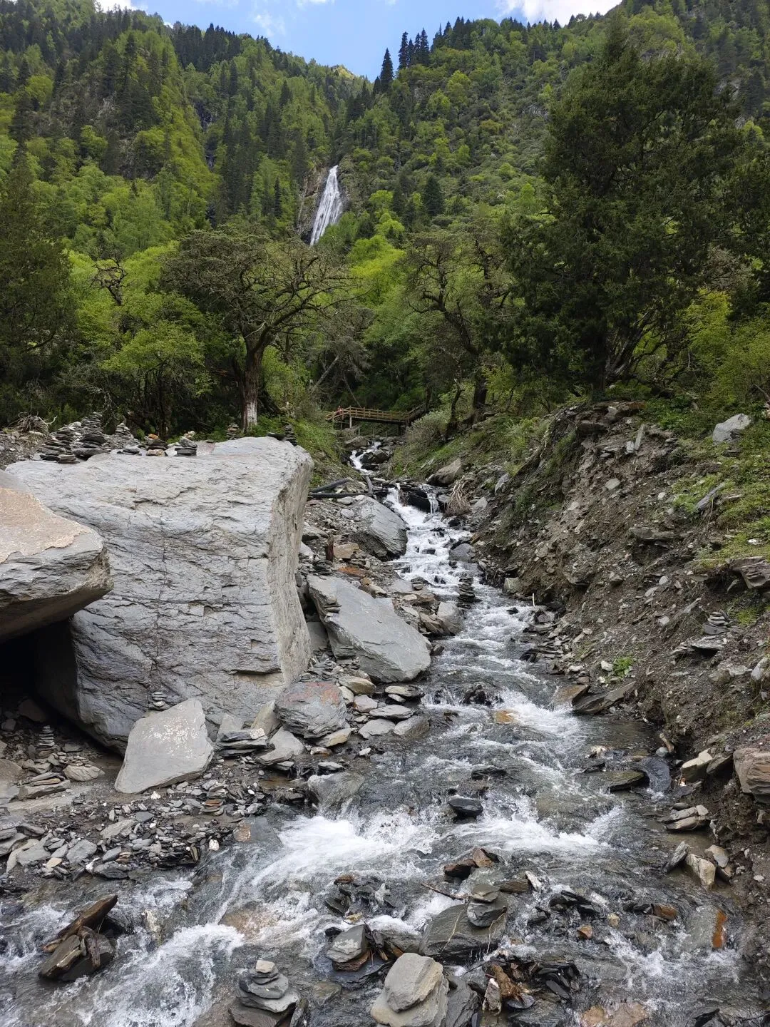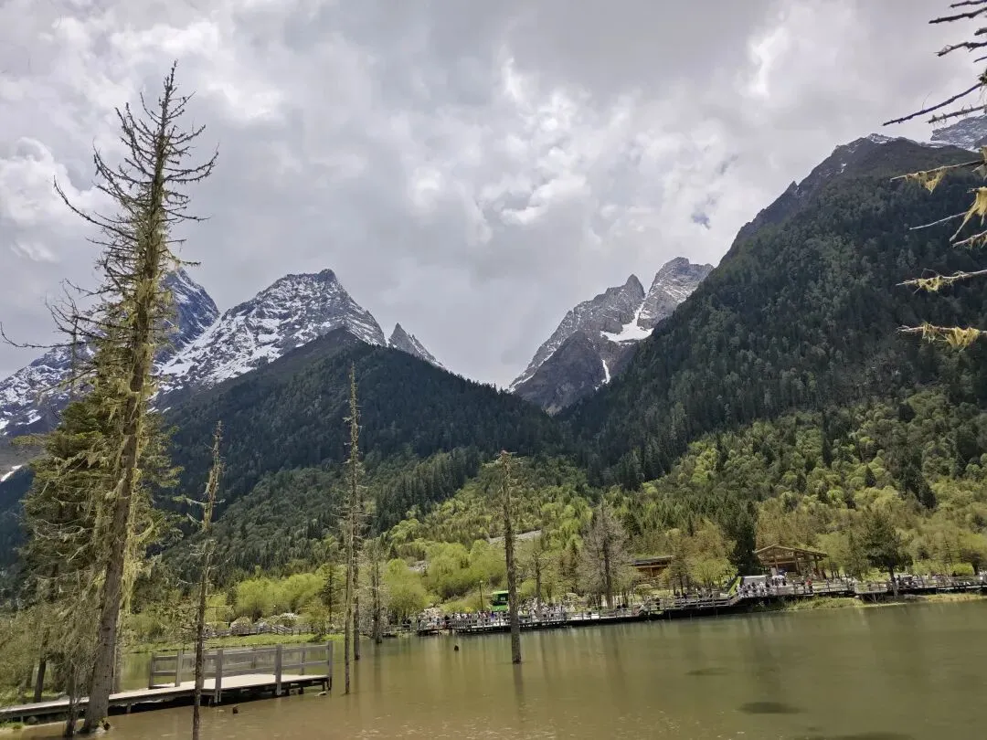 双桥沟是最容易去的,人最多的一条大众路线,一般不容易高反。建议8、9点进景区,太早了有雾。先到达景区最里边的红杉林,然后一路玩下来。2018年我们去,红杉林开放,可以一直走进去看,2025年就封闭起来,只能在山脚拍照打卡了。尽早下山,公交不挤,太晚了挤公交麻烦。全长34.8公里,开发最完善、可全程观光车游览;看点有隆珠措、人参果坪、红杉林冰川等;是老少皆宜的轻松线。双桥沟最高景点红杉林:3840米。少部分人这个位置有高反。