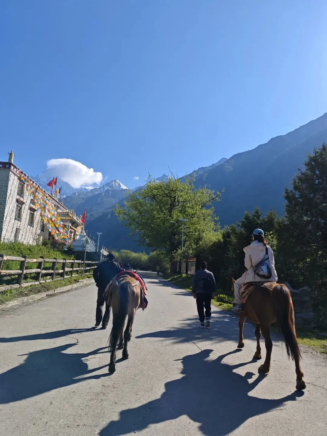 长平沟可以骑马,建议徒步马道土路进入,这样可以适应高反,骑马太快,反而容易高反。从马道(土路)上,坡缓,不用爬台阶。从对面木栈道台阶路下,沿途溪流而下,空气清新,流水潺潺,一路非常治愈。全长29公里,半开发,木栈道+徒步为主;近距仰望四峰,有喇嘛寺、枯树滩、木骡子等;也是长坪沟—毕棚沟穿越经典线。户外爱好者从这里可以穿越到毕棚沟。很多人到枯树滩就有高反无法进入了,我到甲融都高反严重,整个人困得眼睛都睁不开了,如果停下来就一觉睡过去。吓得只能下撤,往回走木栈道。骑马建议体验为主,一小段150,可以免去大爬坡,体力好的,慢慢自己徒步,省钱还舒服。建议不要骑马,死贵,马夫一路聊天,还各种然后加钱或者半路想甩你的都有。马万一不温柔顺,来一个飞崩就麻烦了。见到一个小哥自己骑,太帅气了,但他小时候马背上长大的。