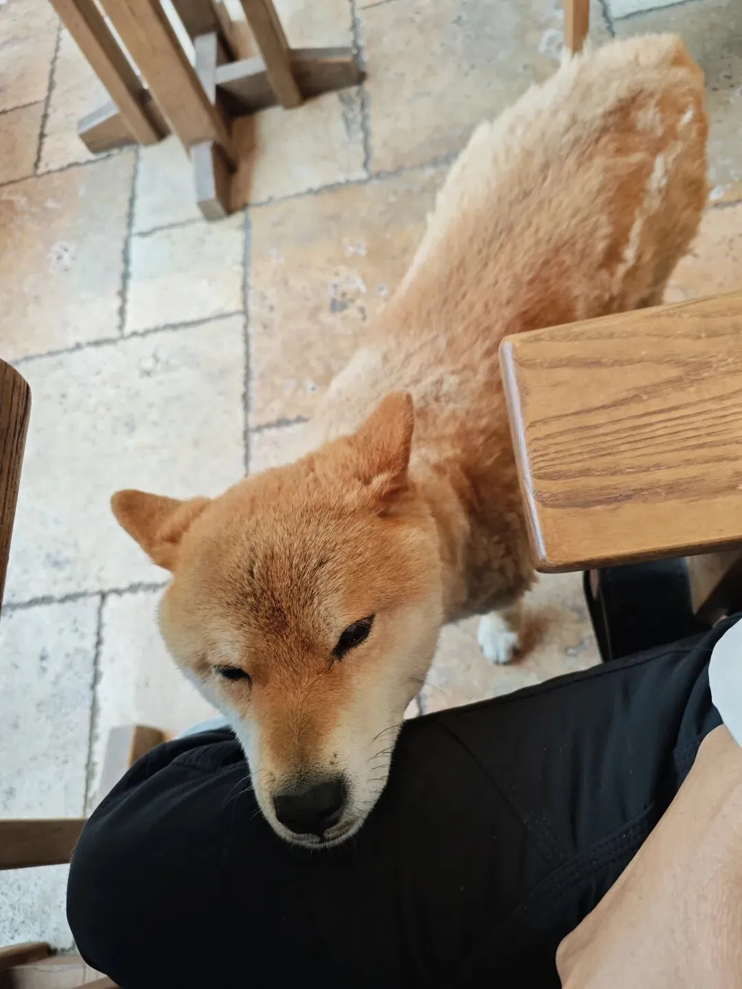 这柴犬,太可爱了,想吃东西,就挨我腿上。还带我们去河边玩,帮我们找到手机。