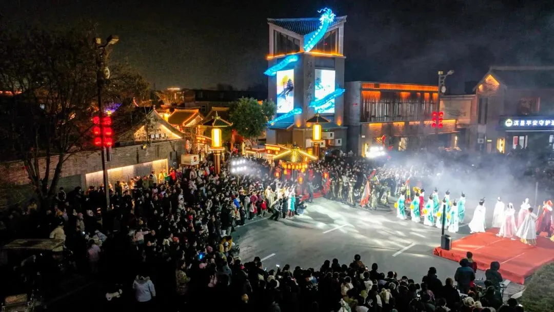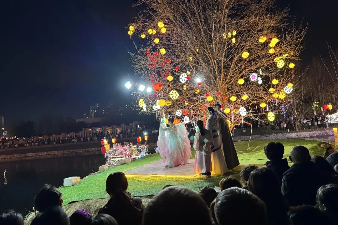 晚上8:30,花船巡游震撼启幕成为全场焦点!画舫缓缓驶过沬水河畔,璀璨灯光、悠扬音乐、曼妙舞蹈相映成趣,把沬水河畔打造成最梦幻的新春舞台,两岸人山人海,热闹非凡。