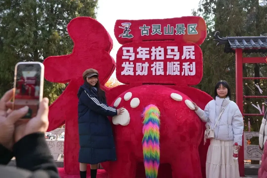 马年专属彩头打卡点“马年拍马屁” 趣味上线,拍上一张讨个好口彩,新年福气自然来。登山祈福寄美好期许,看演绎、赢好礼,灵山秀水间,年味与春意交织,氛围感十足。