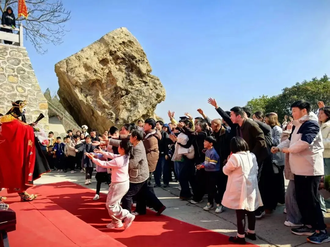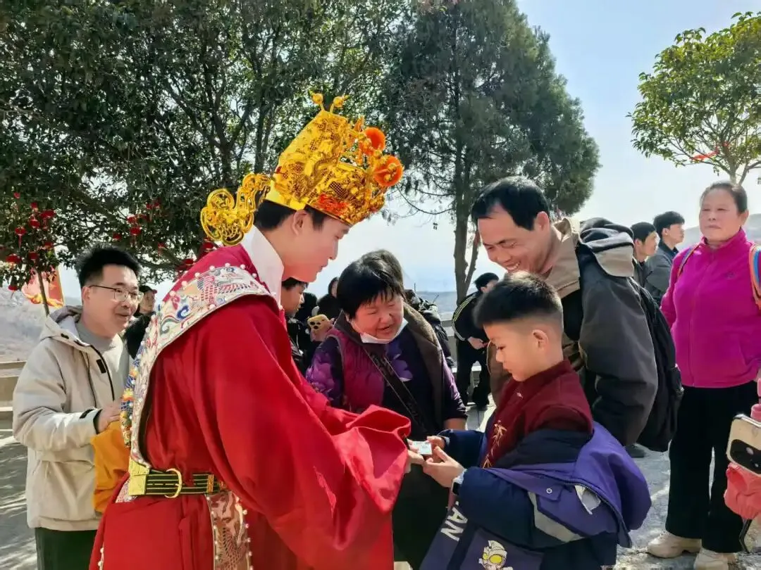 古灵山景区人气爆棚,沉浸式演绎轮番上演,祥瑞氛围拉满。女娲赐福、财神送宝、魔家四将机甲巡游惊艳亮相,各路瑞祥角色与游客亲密互动,争相合影定格美好瞬间。