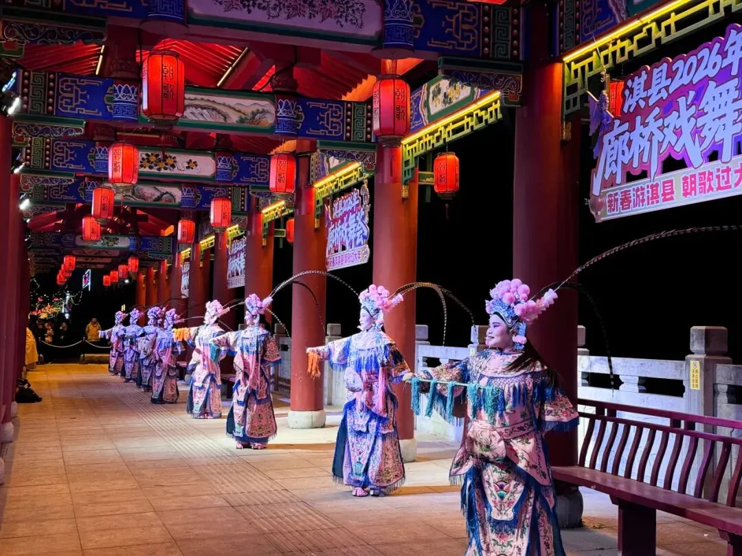 当夜幕降临,淇县的精彩依旧不停歇,朝歌老街、沬水廊桥化身梦幻新春舞台,灯光璀璨,歌声、笑声、欢闹声交织,淇县越夜越精彩。