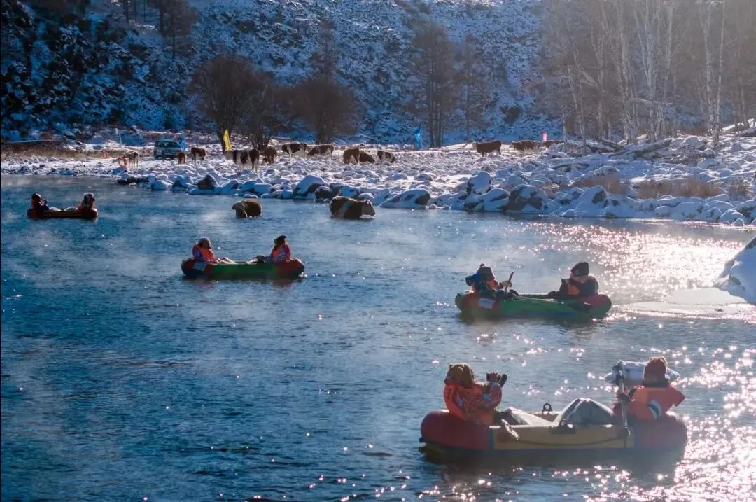 正月初二,广西游客王悦婷在阿尔山不冻河体验了极限漂流。