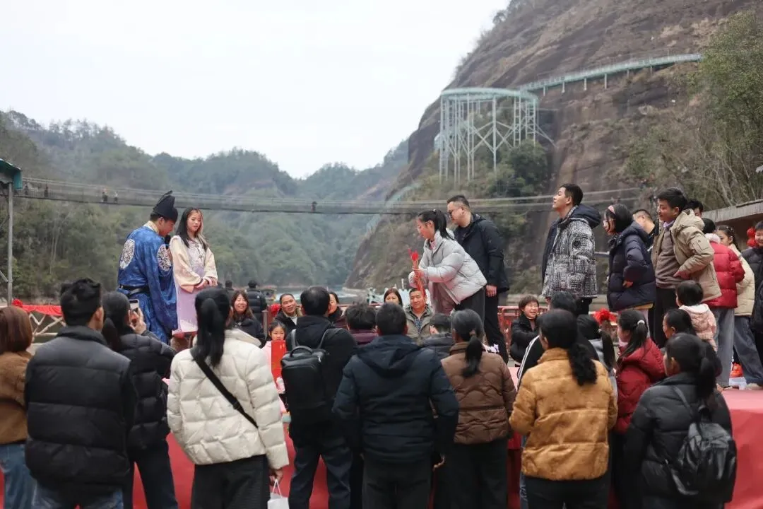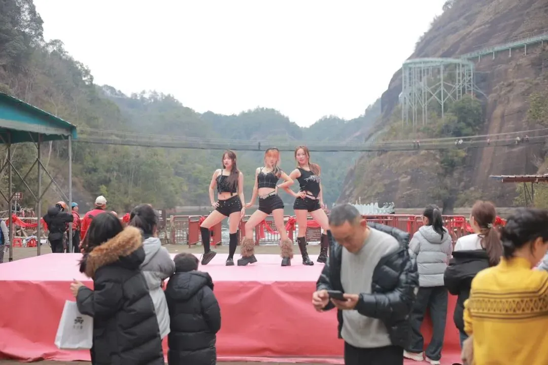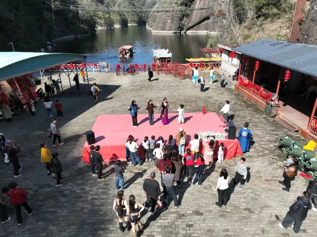 年味东浒寨,百里水上丹霞与新春红韵交相辉映,赤壁映春、石窟瀑布飞流直下,随手一拍都是氛围感新春大片。游客们在参与活动、体验游乐的同时,漫步山间,赏丹霞盛景、呼吸新鲜空气,在山水之间感受不一样的春节韵味,实现了“赏美景、享年味、享欢乐”的多重体验。