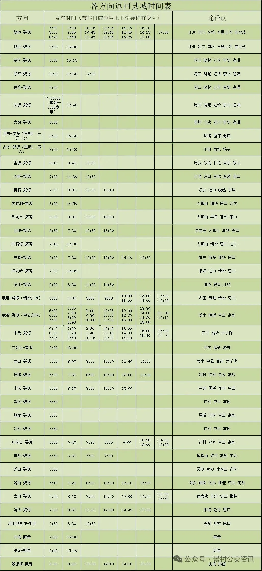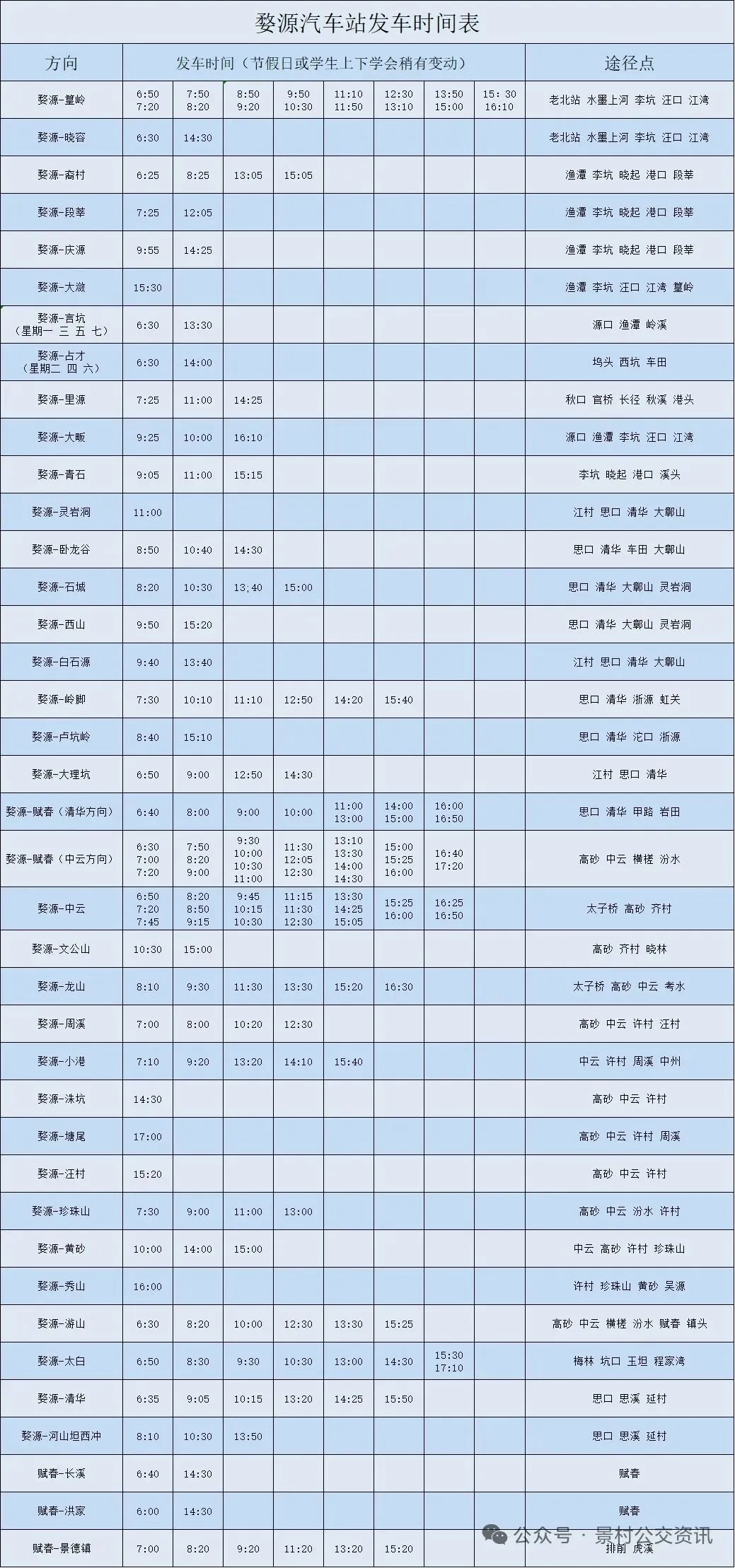 婺源2026年旅游专线、城乡客运班线发车时间来啦!