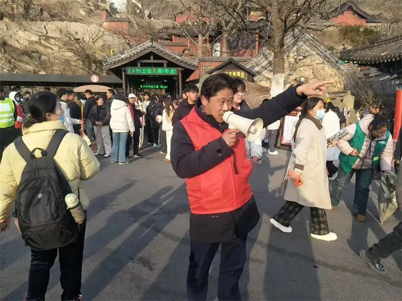中国好人、市红旗义工爱心之家理事长刘爱东表示:2026年春节假期是我们参与景区志愿服务第十五个年头了。此次志愿服务,是市红旗义工爱心之家践行“奉献、友爱、互助、进步”志愿精神的生动实践。志愿者们以责任守护秩序,用服务传递温暖,用实际行动助力景区安全有序运行,为春节文旅市场保驾护航,赢得广大游客一致点赞。