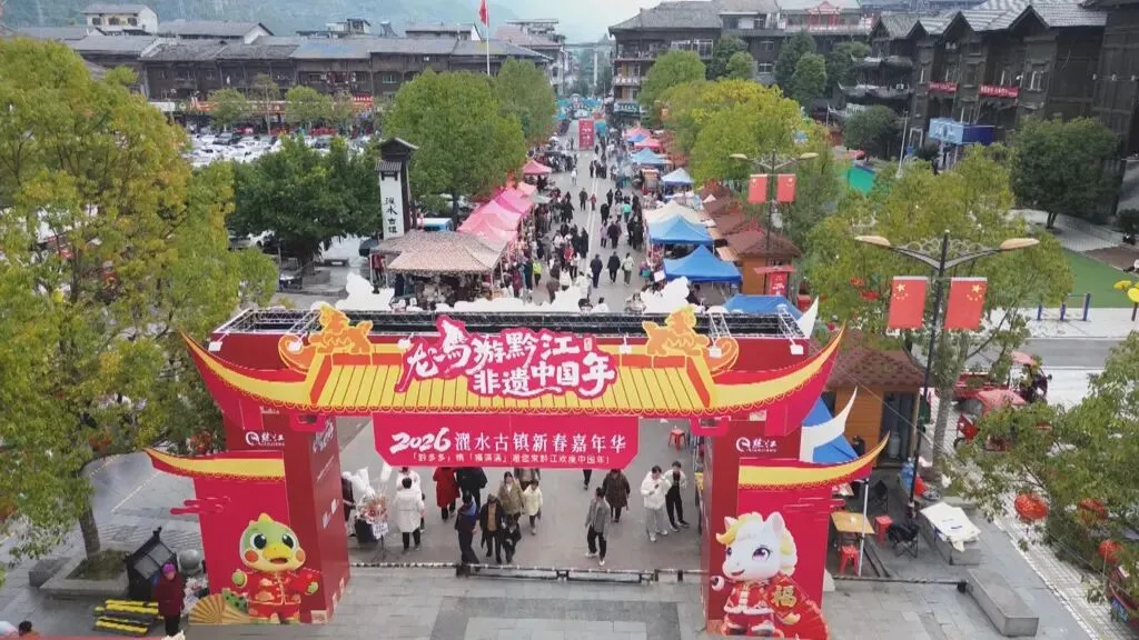今年春节,濯水景区以“龙马游黔江·非遗中国年”为主题,推出新春巡游、非遗展演、非遗美食市集、篝火晚会等一系列精彩纷呈的文旅活动。龙马主题巡游热闹非凡,非遗技艺展演惊艳亮相,土家民俗互动趣味十足,游客们踊跃参与、欢声笑语不断,沉醉在欢乐祥和的节日氛围中,感受传统文化与新春佳节的完美融合。