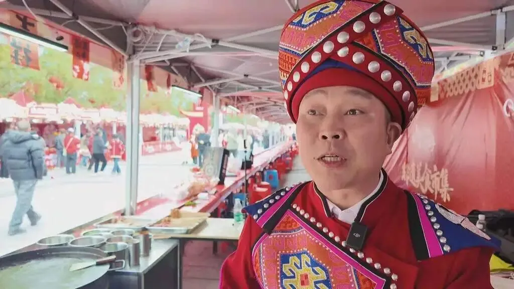 濯水景区非遗美食集市摊主——王明强:新年的集市非常热闹,我们把土家非遗美食展现得淋漓尽致。不光是这些,我们还把国家级的非遗项目和非遗美食一块儿送给我们的朋友,让更多的朋友来感受热闹非凡的濯水景区。
