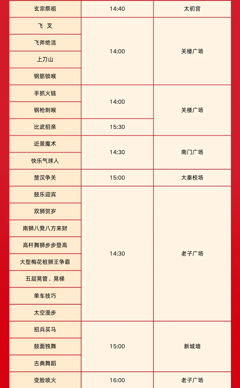 年味 大赏 日日都精彩! 2026函谷关新春大庙会 火热进行中! 快来看看最新的节目单吧 ⬇⬇⬇