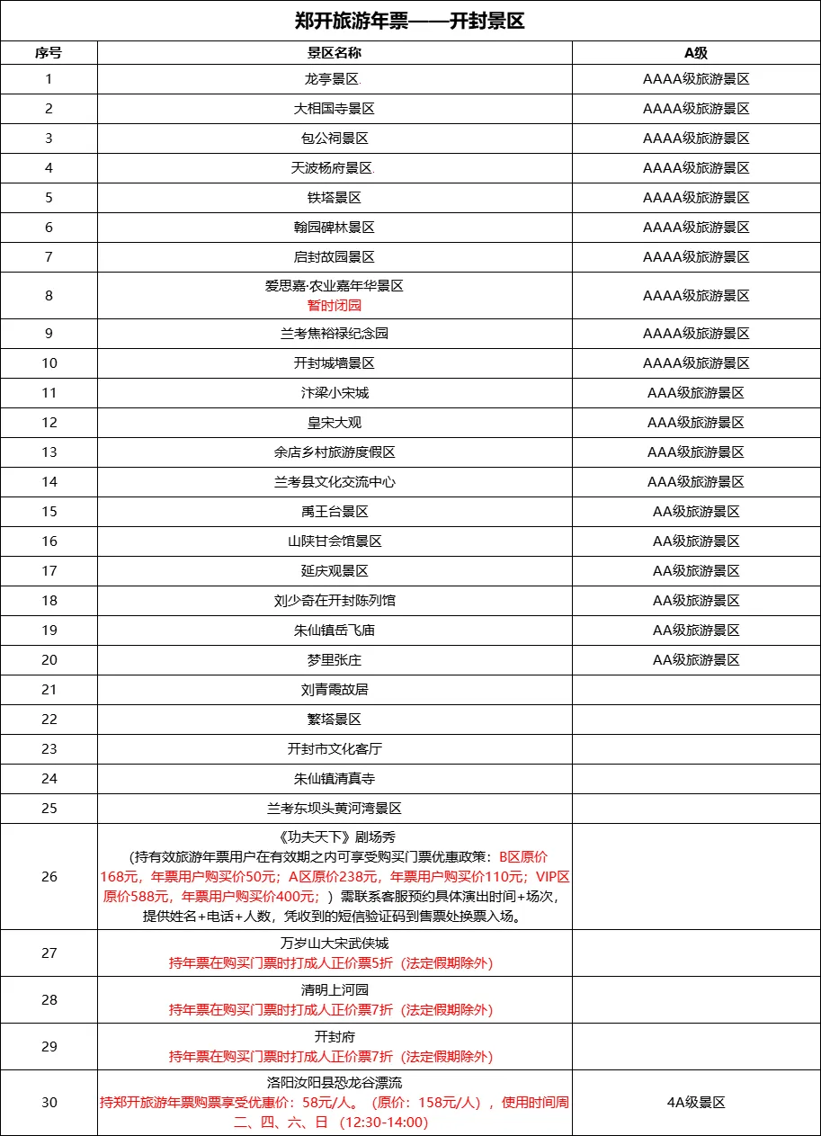 除了无限次畅玩的景区,年票还能解锁超多折扣福利:万岁山武侠城5折(法定假期除外);清明上河园7折(法定假期除外);开封府7折(法定假期除外)…… 光这几个景区就能省出好几张年票钱!