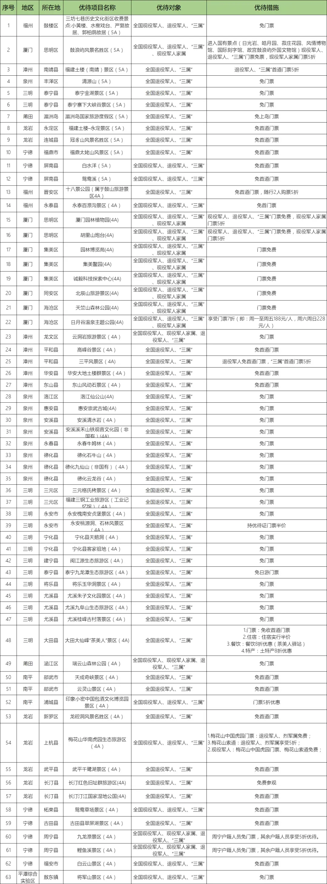 优待对象范围:全国现役军人、退役军人、“三属”人员(烈士遗属、因公牺牲军人遗属、病故军人遗属)、现役军人家属