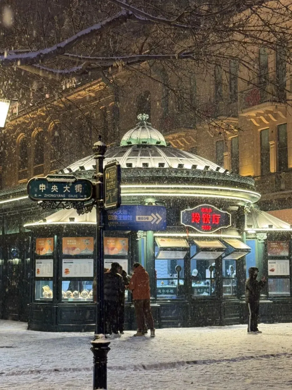 中央大街上,面包石被踩得发亮,马迭尔冰棍和锅包肉的热气在零下二十度的空气里凝成白雾。