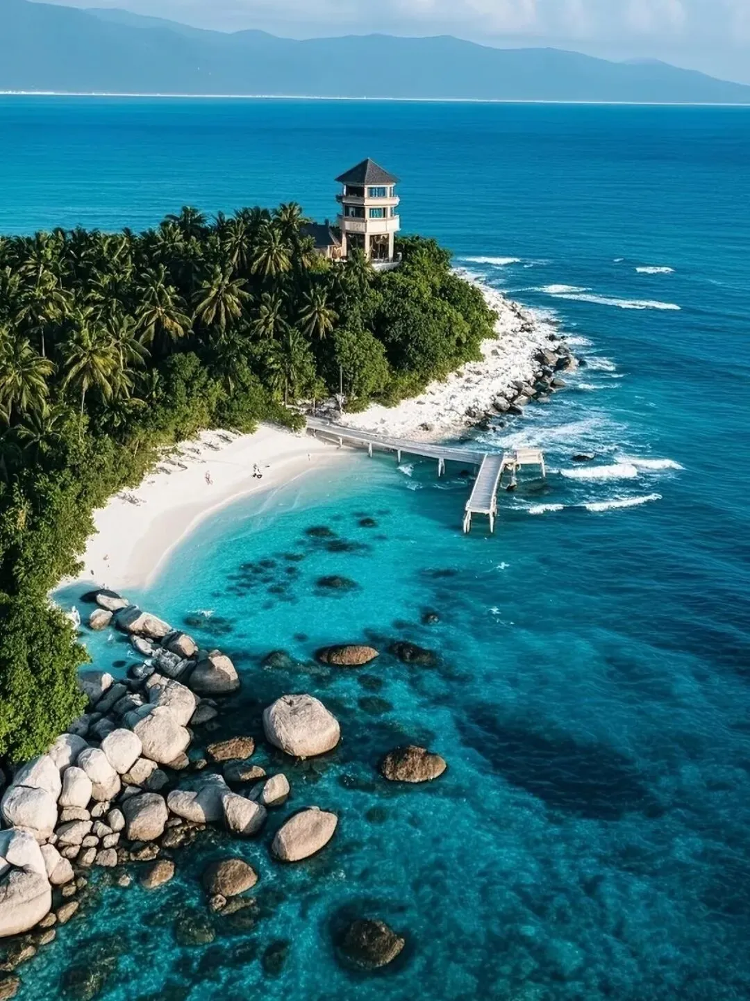 这座小岛拥有三亚最清澈的海水,能见度达27米。潜水下去,珊瑚礁如海底森林,热带鱼群穿梭其间。岛上环岛步行道串联起观日岩、金龟探海、情人桥等景点。