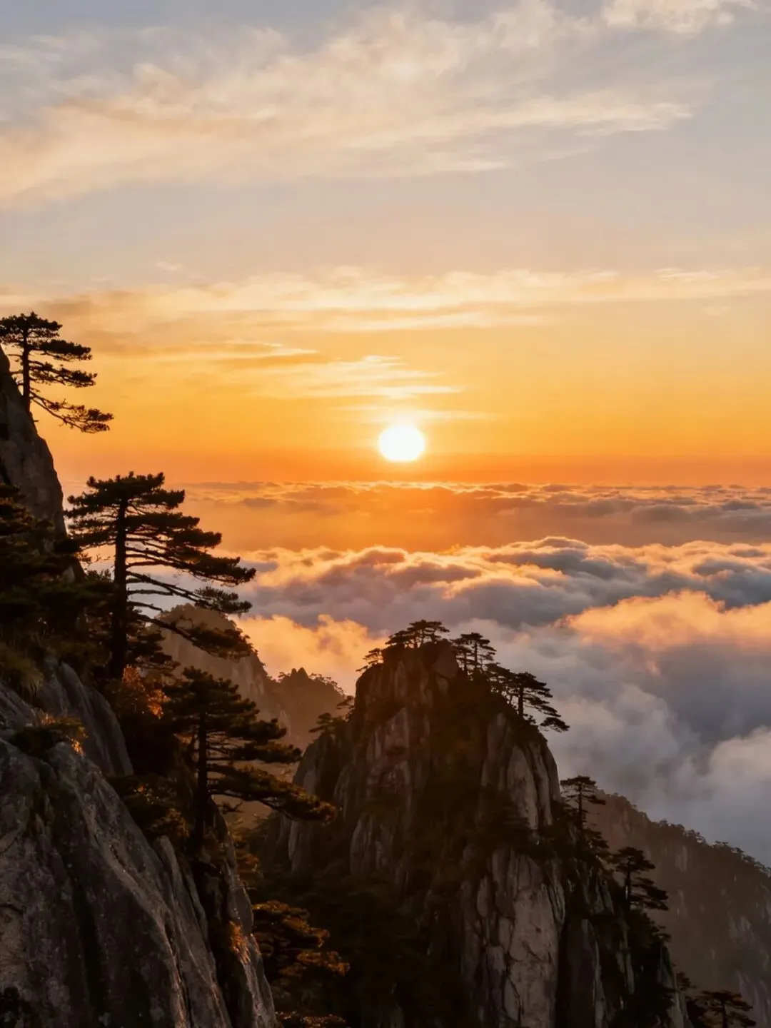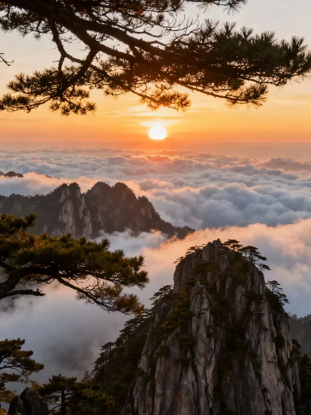 黄山风景区:冬雪云海的水墨仙境
