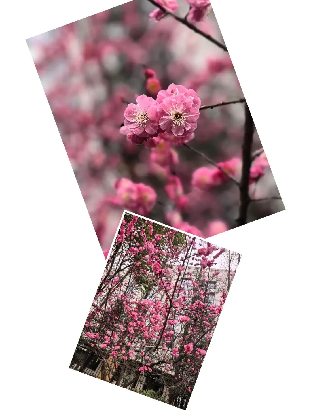 我们还经历了一场令人兴奋的“梅花雨”,梅花的花瓣随着风,随着雨,一片片的飘飘洒洒的从树枝上洒落下来,洒到了我们的脸上,身上,头发上。