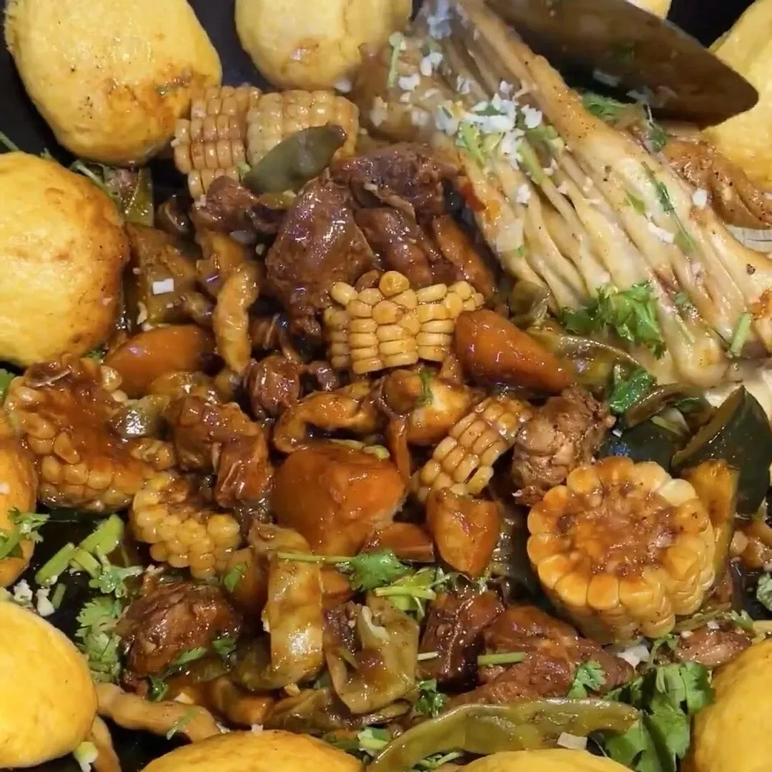 而最具人间烟火气的,还属东北铁锅炖。一切风味,都从“咕嘟咕嘟”的炖煮声中徐徐展开——排骨炖豆角、大鹅炖酸菜、小鸡炖蘑菇,再配上黑土地长出的土豆、南瓜、豆角与山菌……热腾腾一锅,质朴扎实,营养与风味俱在,吃的是暖意,品的是豪情。