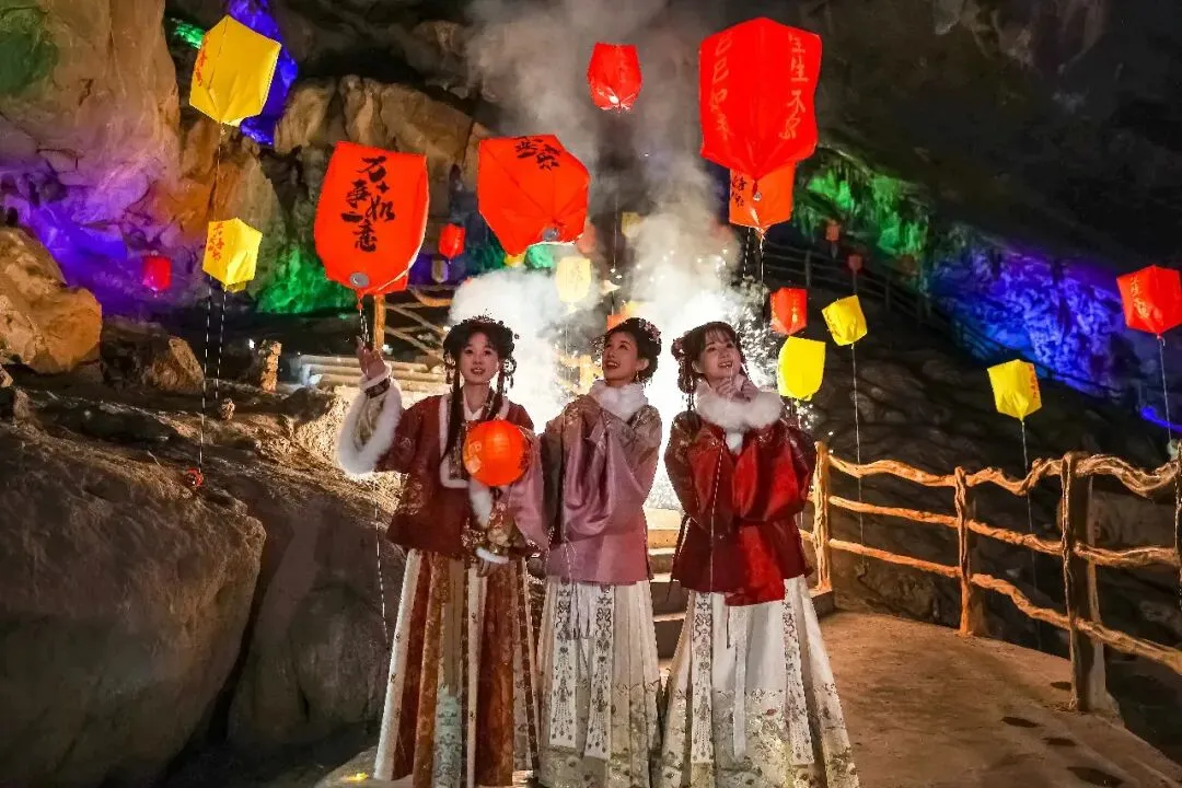多彩的民俗文化魅力独特,秀美的山水吸引万千游客。春节假期,连州7家主要旅游景区共接待游客12.58万人次。传统王牌景区热度不减:连州地下河接待游客6.7万人次,形态万千的钟乳石在彩灯映照下更显神秘瑰丽;湟川三峡·龙潭文化生态旅游区接待游客1.89万人次,游客泛舟江上,尽享诗画意境。新兴景区同样表现抢眼,西岸·禾悦生态旅游区的草坪音乐会、洛神谷的篝火晚会,吸引大批年轻游客打卡体验,让秀美山水间回荡起时尚动感的节拍。