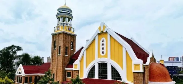 这两张是吉林火车总站的前后样子,老影像里墙面是温润的砖黄,钟塔像一根针扎在天际,线条细细密密,现在涂装颜色跳了一点,尖帽子亮起来,玻璃窗把天色拉进来,妈妈说第一次坐火车就是从这站上车,票夹在胸口一路不敢睡,钟声一敲心口跟着回音一起颤。
