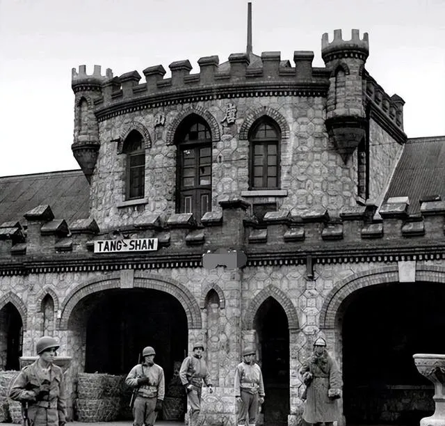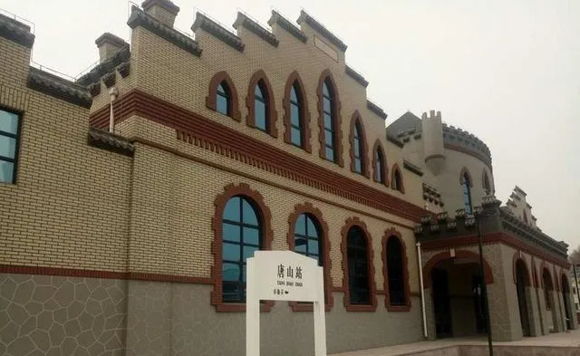 这个像城堡的家伙叫唐山火车站,旧照是石块垒出的冷厉,垛口一圈圈,拱门下人影忙,字牌写着地名像军号一样响,现在外墙换成规整的小砖,窗洞还是那扇,棱角却温和了,站牌立在前头白底黑字,远看像给老站盖了一层新皮。