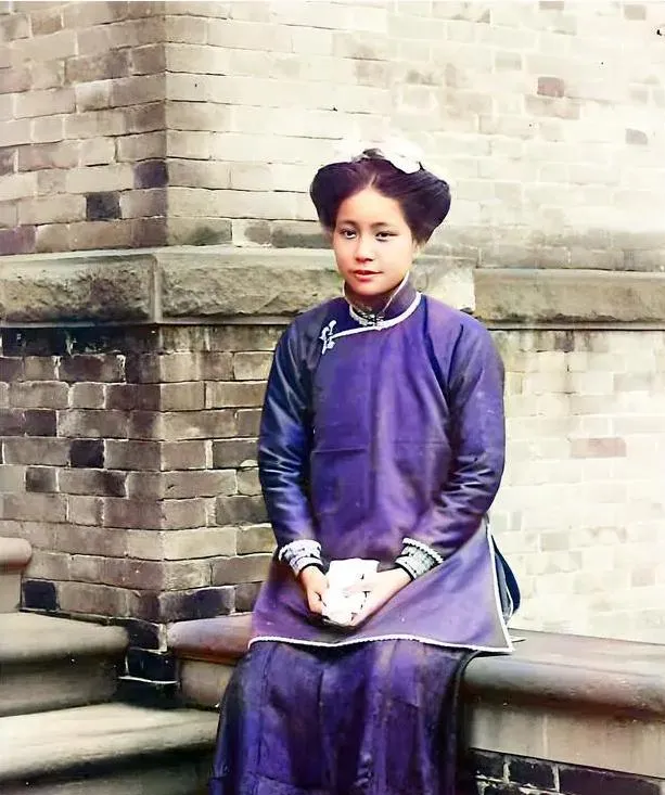 这组里正中那三根立着的叫大理崇圣寺三塔,早年的塔身细长,院里一圈平房把空地围得很紧,旁边那张民国女孩的蓝袍子,坐在砖台上眼神软软的,老师说她读过教会学校,衣角的滚边针脚密,另一张是如今街头的时尚女孩,手机红壳在手心里晃,背景还是老砖墙,可气质已经从文气转到利落,时代就这么隔着一条街拐了个弯。